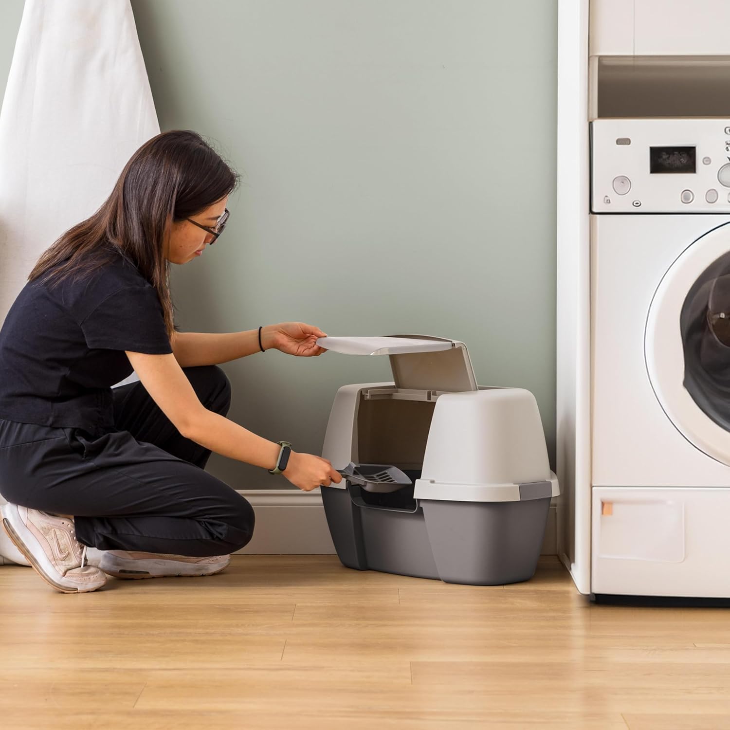 Ideal for apartments, small rooms, or multi-cat households, this litter box is both functional and stylish in a neutral gray color that blends into any home decor.