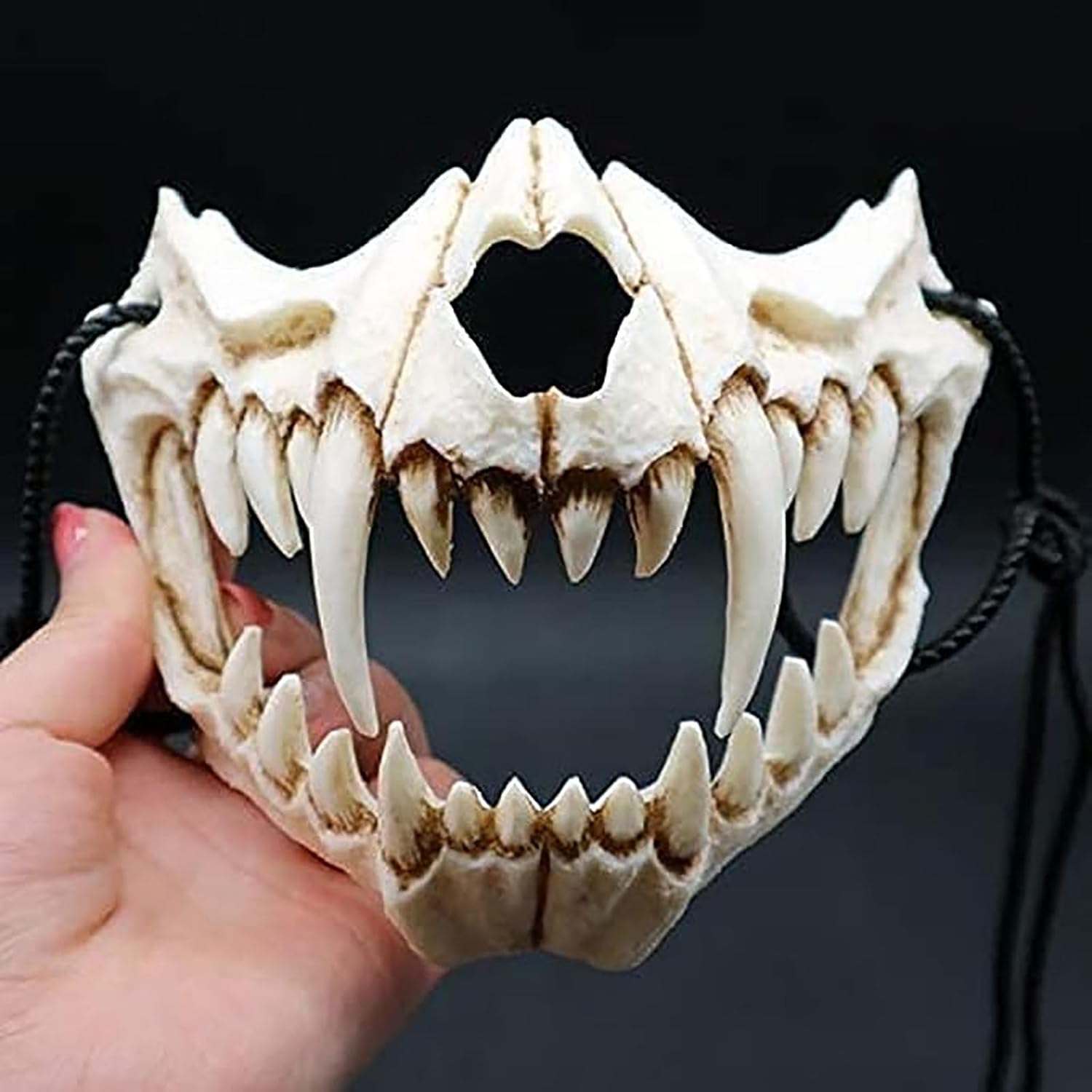 Japanese Halloween Mask, Resin Mask Half Face Tiger Cosplay Mask Skull Scary Mask Cosplay Decorative Mask for Adults
