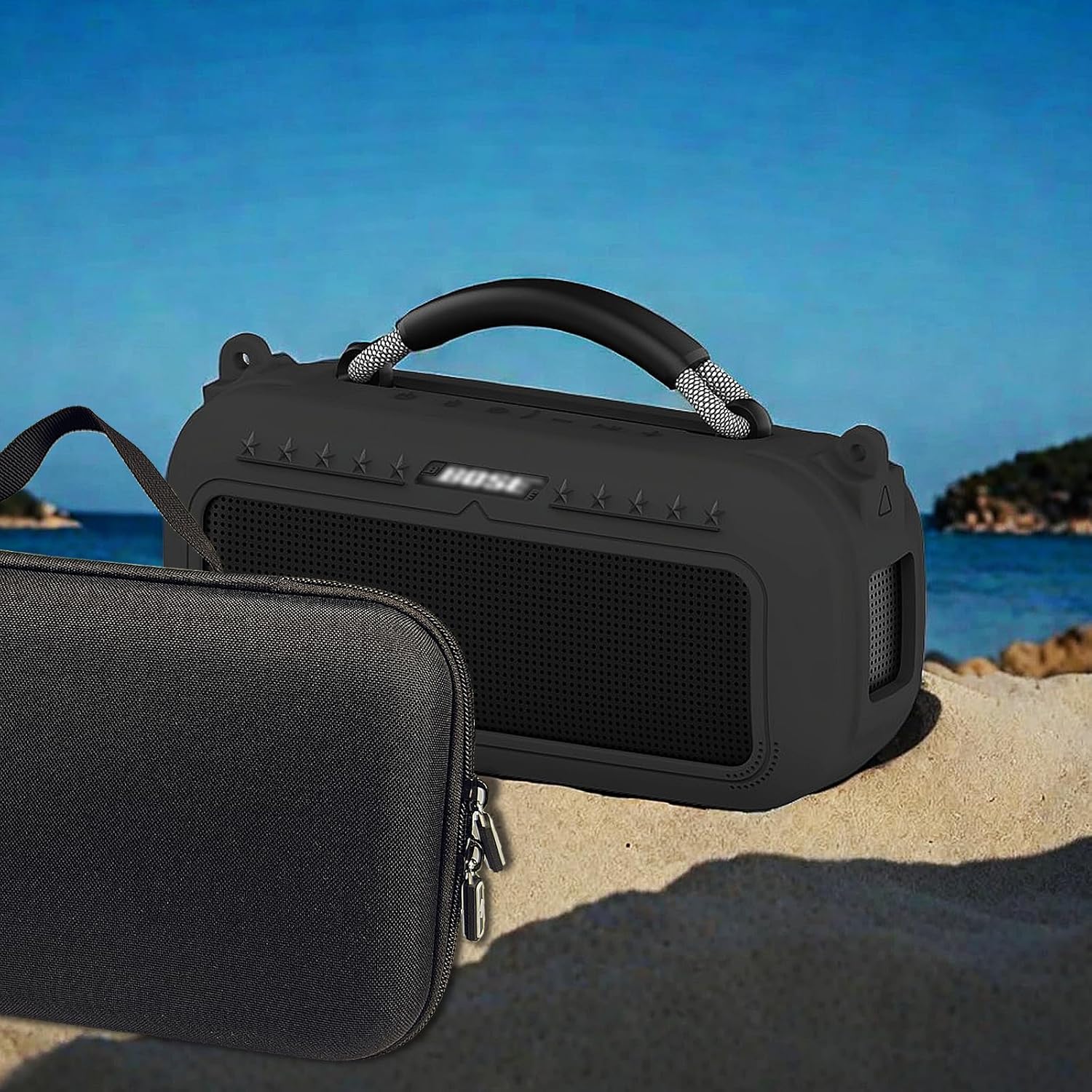 - Storage Holders for bose soundLink max wireless speaker shoulder strap- Hard case is made of EVA matetial, silicone cover is make of soft silicone material, will give you soft feeling. Soft silicone sleeve for soundLink max wireless speaker has accurate charging port so that no need to take off silicone shell for max speaker during charging.