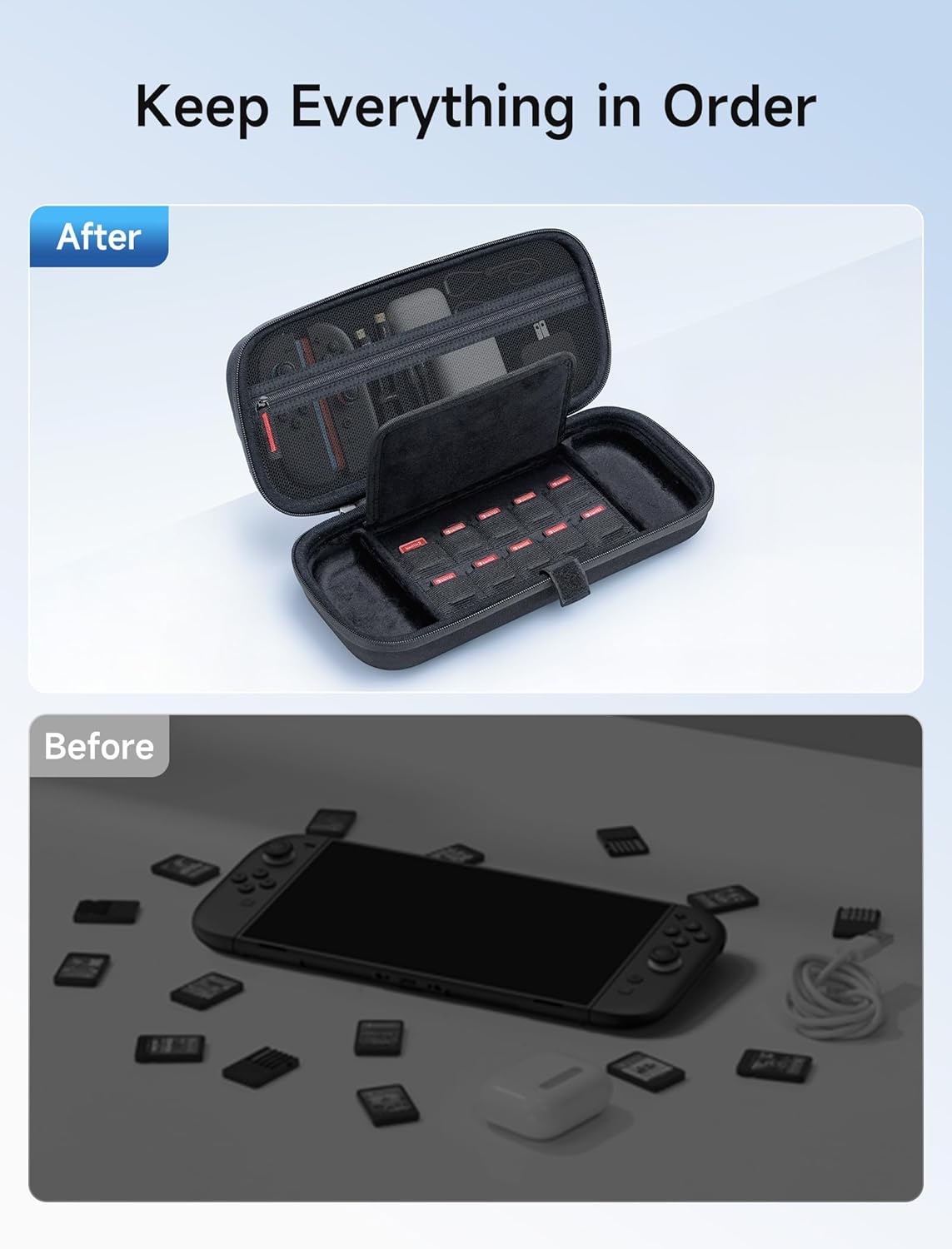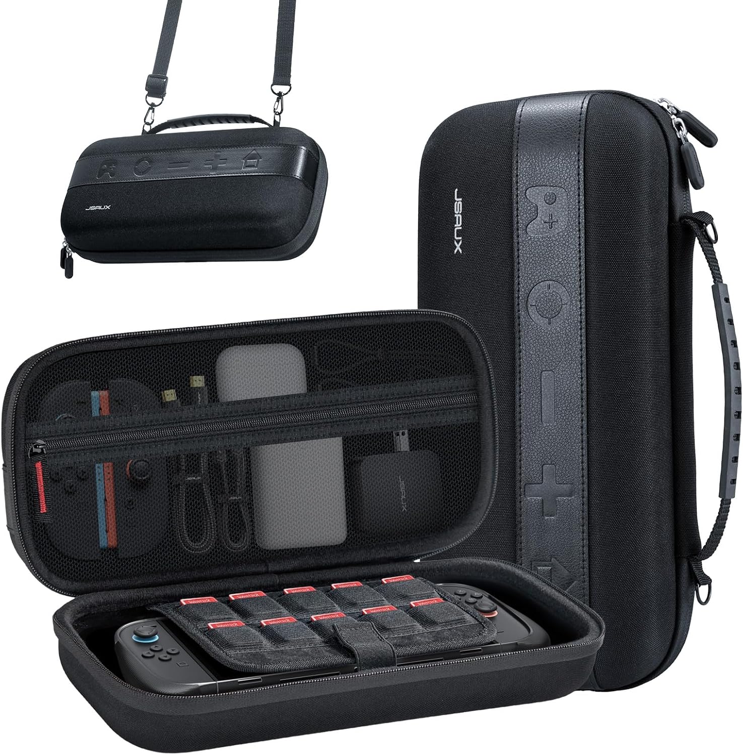 JSAUX Carrying for Nintendo Switch 2 2025, Hard Shell Travel Case with 20 Game Card Slots, Large Accessory Pocket for Joy-Con, Charger, Cables, Stylish Protective Bag for Switch 2, Black