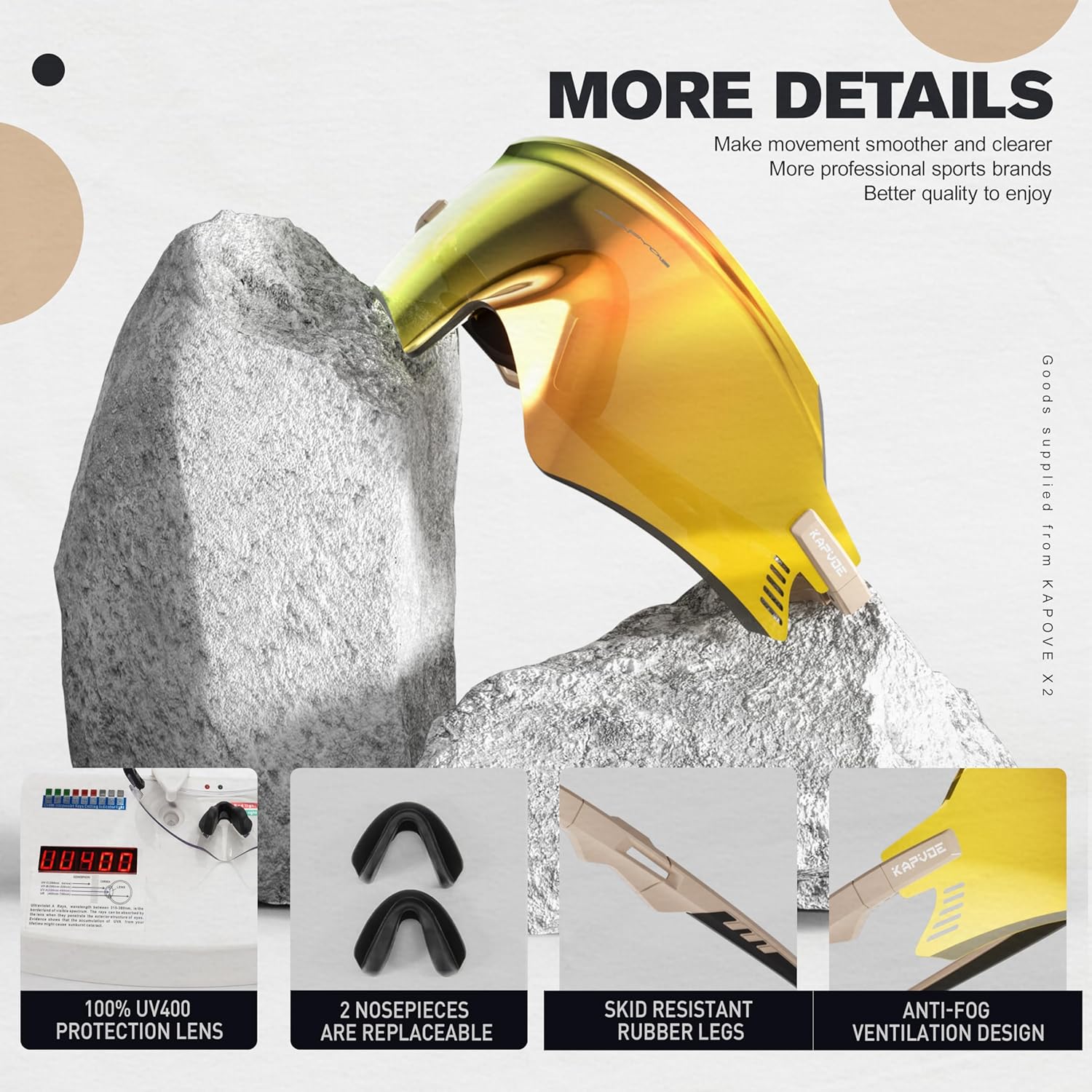 - 【Polycarbonate Lenses】 KAPVOE cycling glasses are made of high-grade polycarbonate that has UV400 protection, can effectively block harmful UVA & UVB rays, are safe, durable, and impact-resistant, protect your eyes and nose from sand, heavy wind, and strong sunlight.