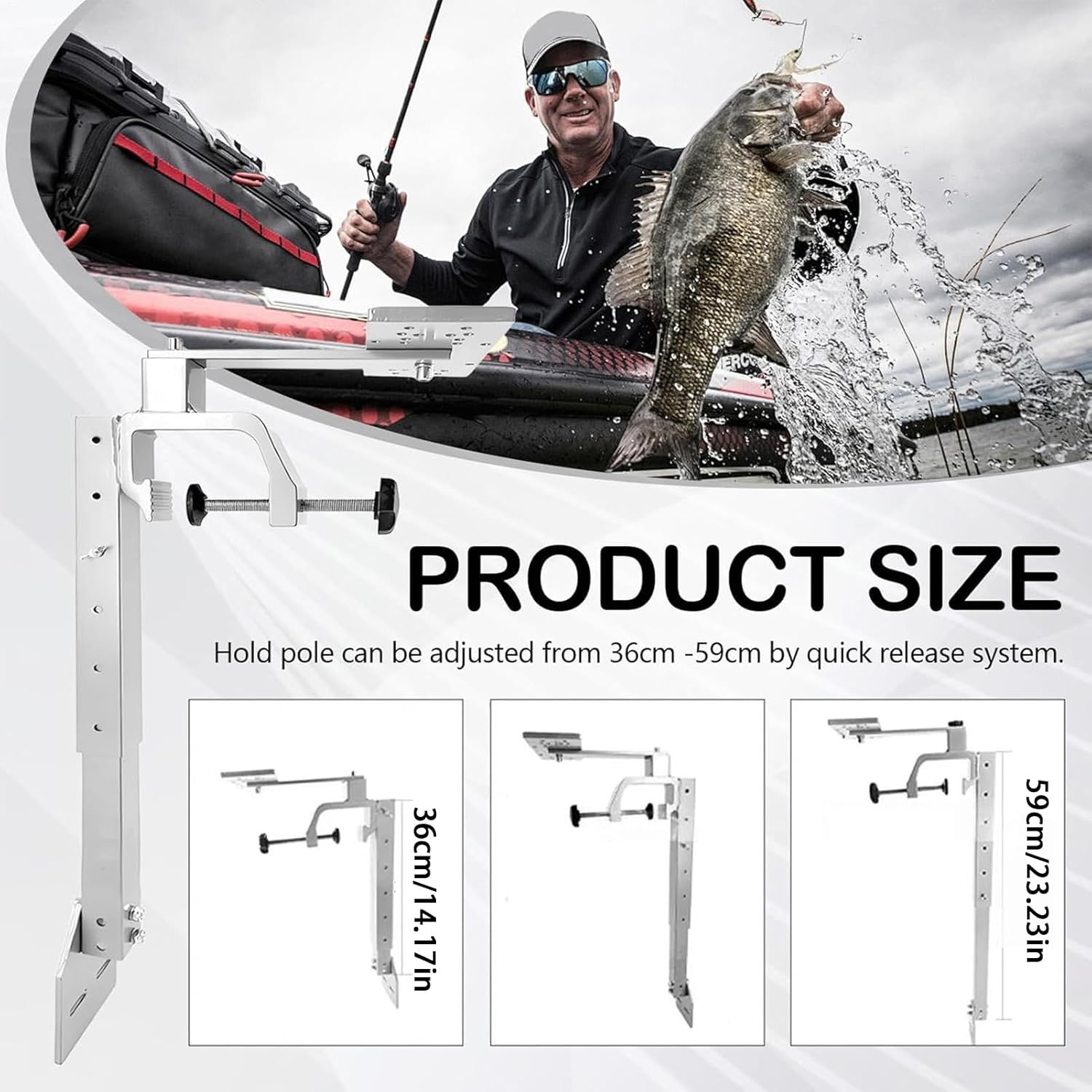 Flexible Mounting Flexibility: Designed to adapt to various mounting setups on boats and sidewalls, featuring smooth height adjustment within a 36 to 59 cm range, allowing users to achieve the perfect positioning effortlessly