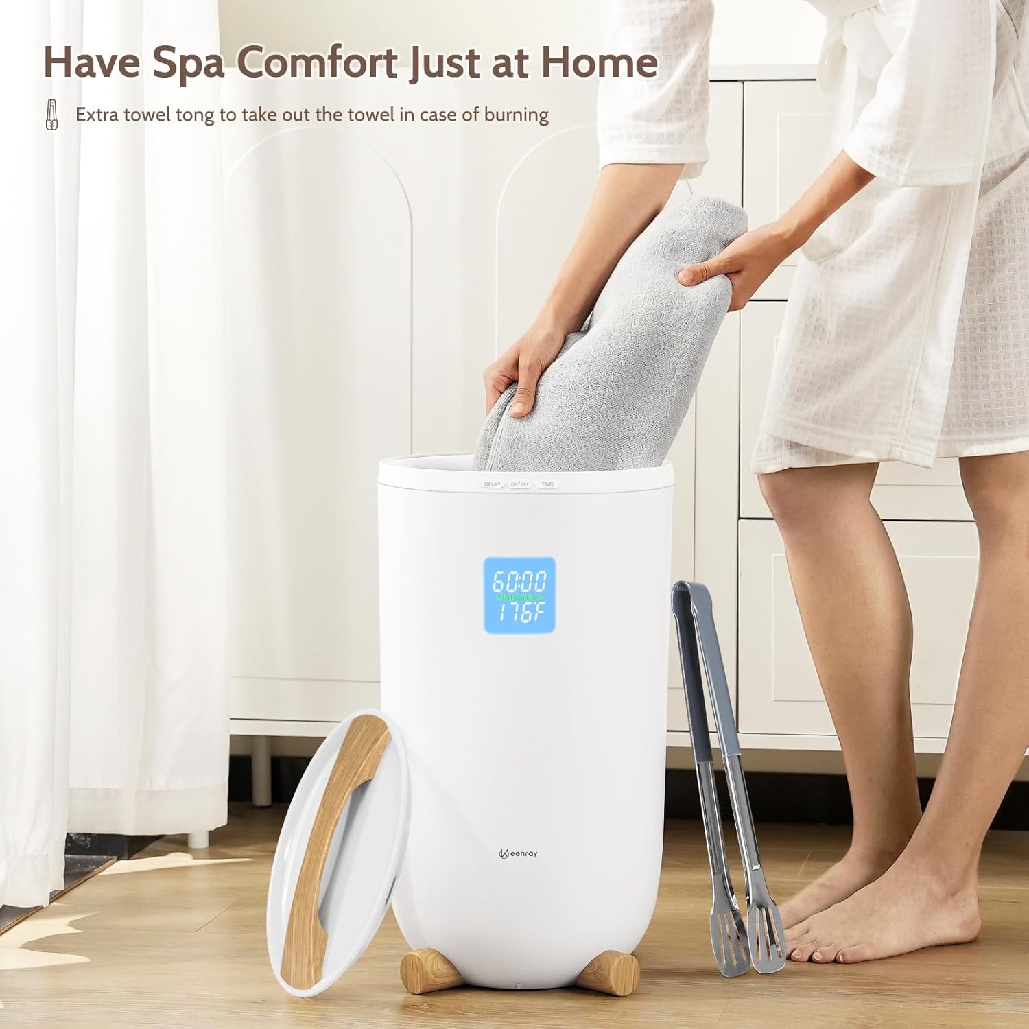 - A Warm and Sweet Gift - This versatile portable luxury towel warmer is a well thought-out gift for housewarming, wedding, shower or birthday, anniversary and mother’s day etc. Perfect Accessory for Home, Pool House, Shower, Salon, Hotel, Spa, Massage, Baby Care, Elders and people getting bed & More.