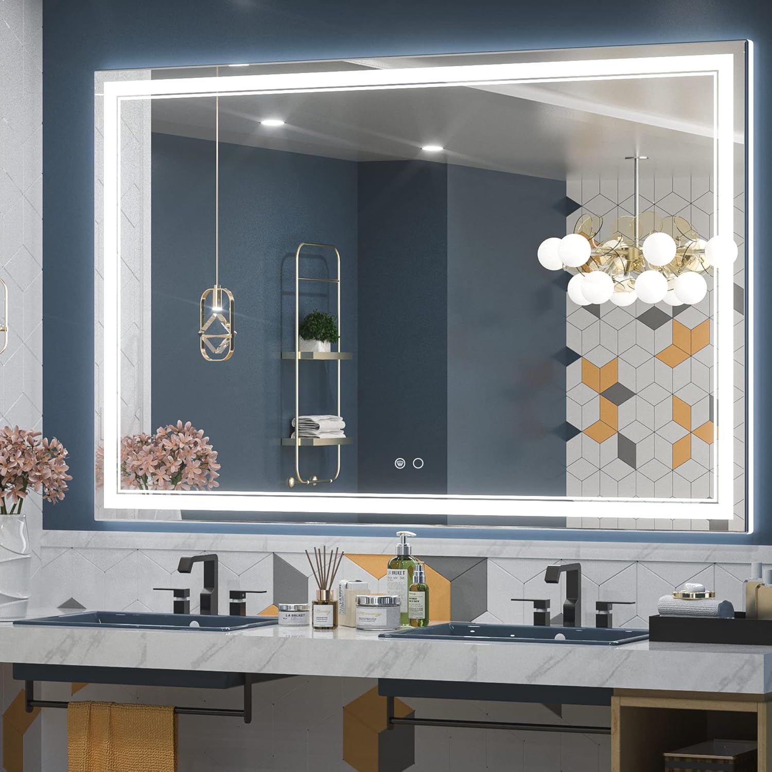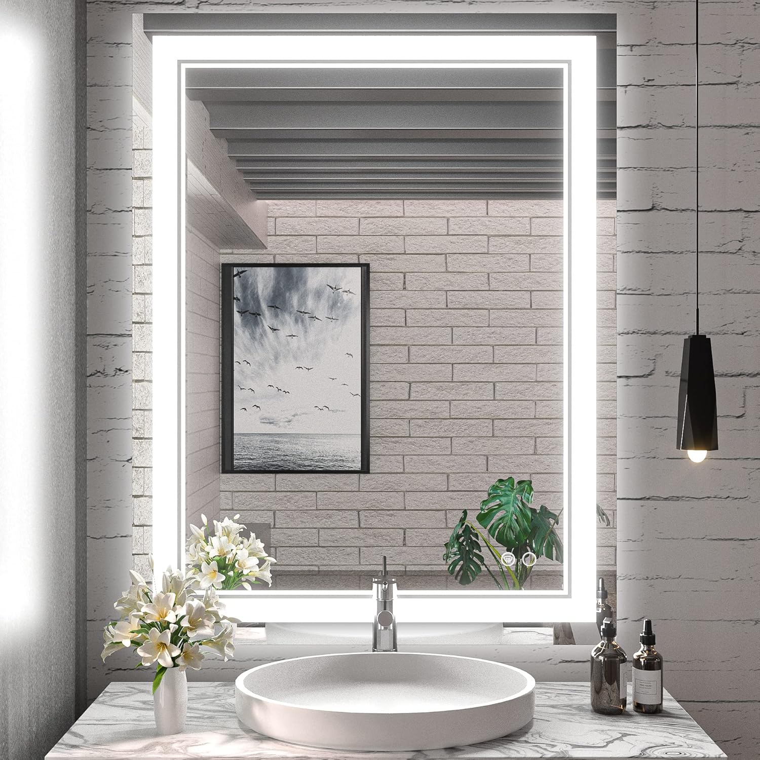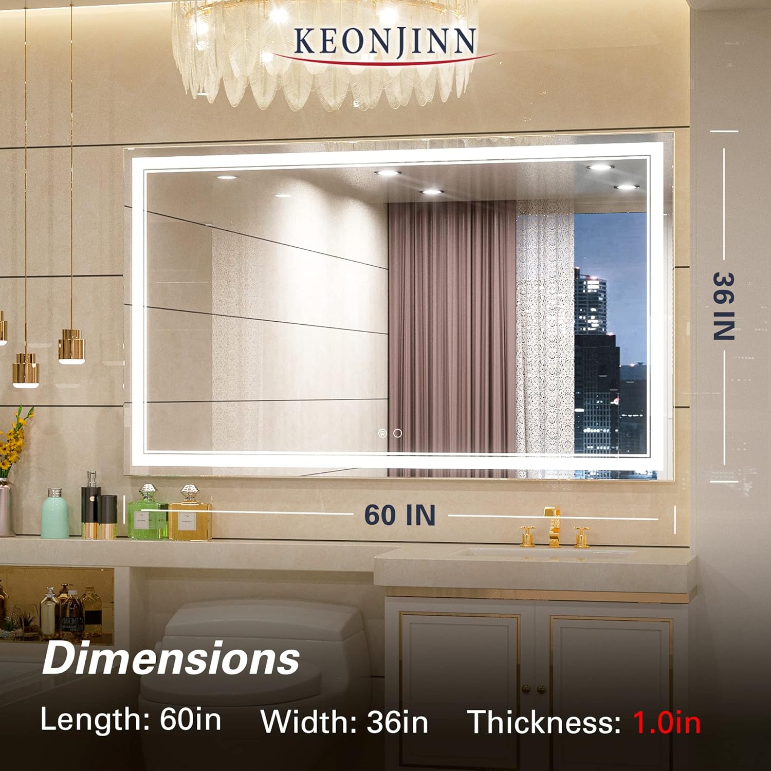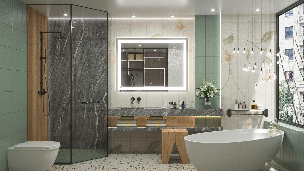 • 【Dimmable & Memory】 The brightness of this modern led mirror is dimmable, simple tap to turn the mirror light on/off while long press on the button can adjust the brightness of the mirror (10%-100%). With the UL listed LED power driver, this wonderful bathroom led mirror is available for an excellent lighting experience. With memory function, it can remember your setting preferences.