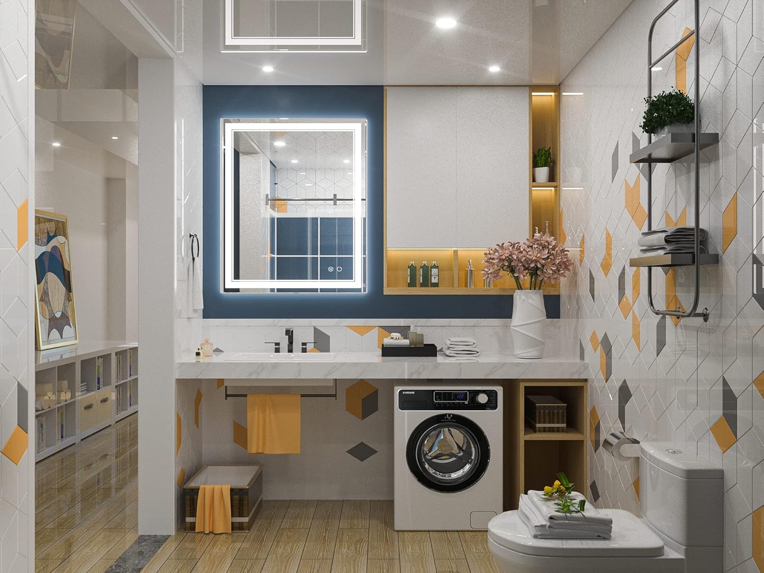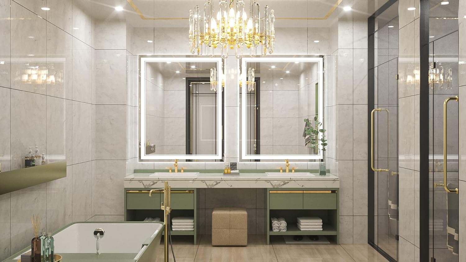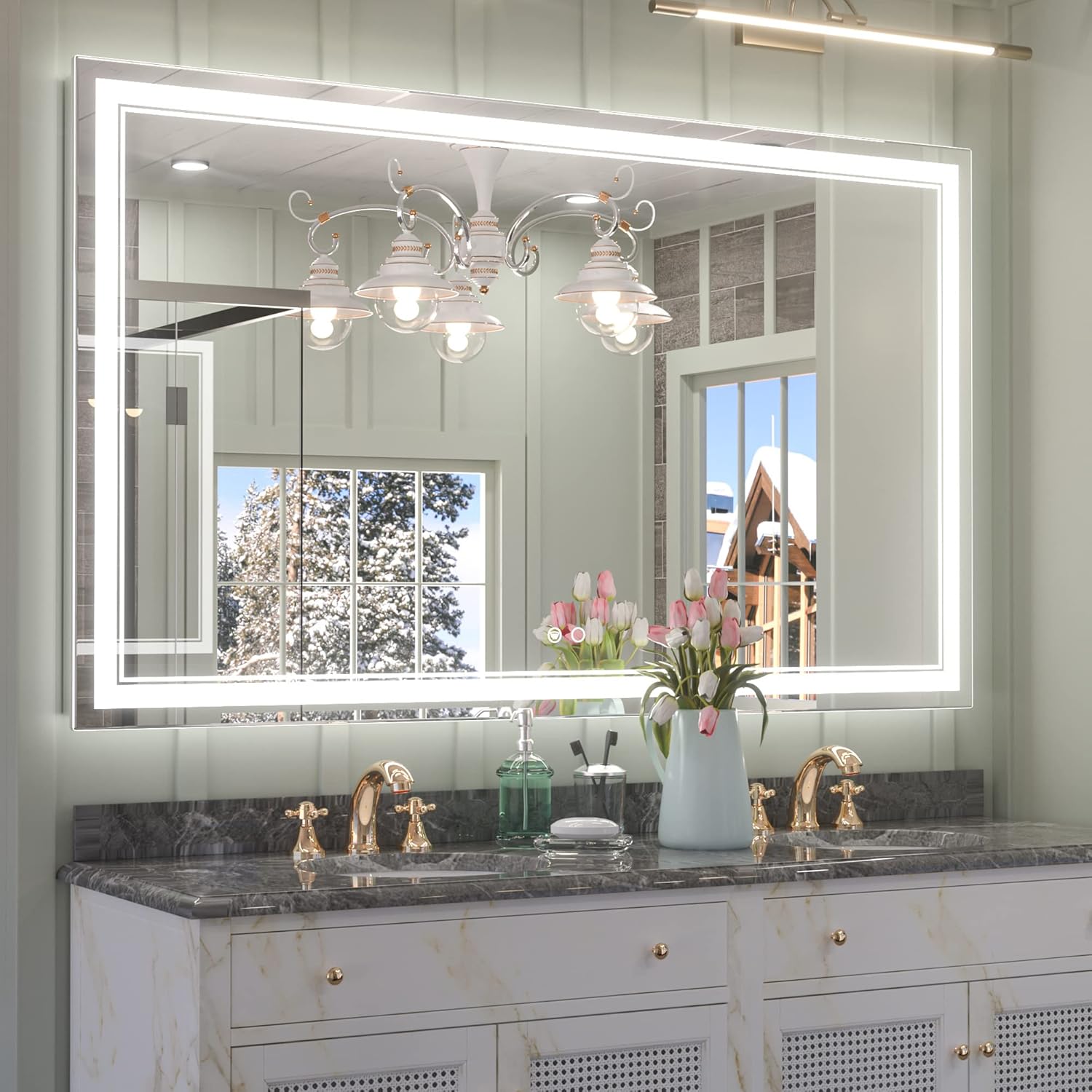 • 【Dimmable & Memory】 The brightness of this modern led mirror is dimmable, simple tap to turn the mirror light on/off while long press on the button can adjust the brightness of the mirror (10%-100%). With the UL listed LED power driver, this wonderful bathroom led mirror is available for an excellent lighting experience. With memory function, it can remember your setting preferences.