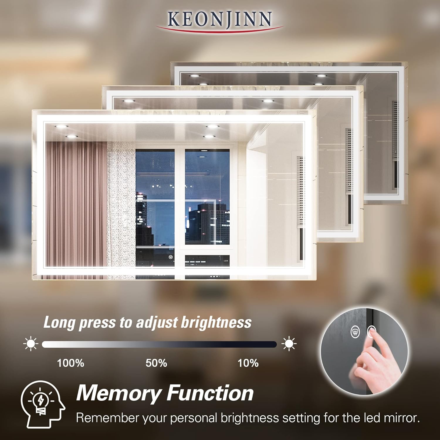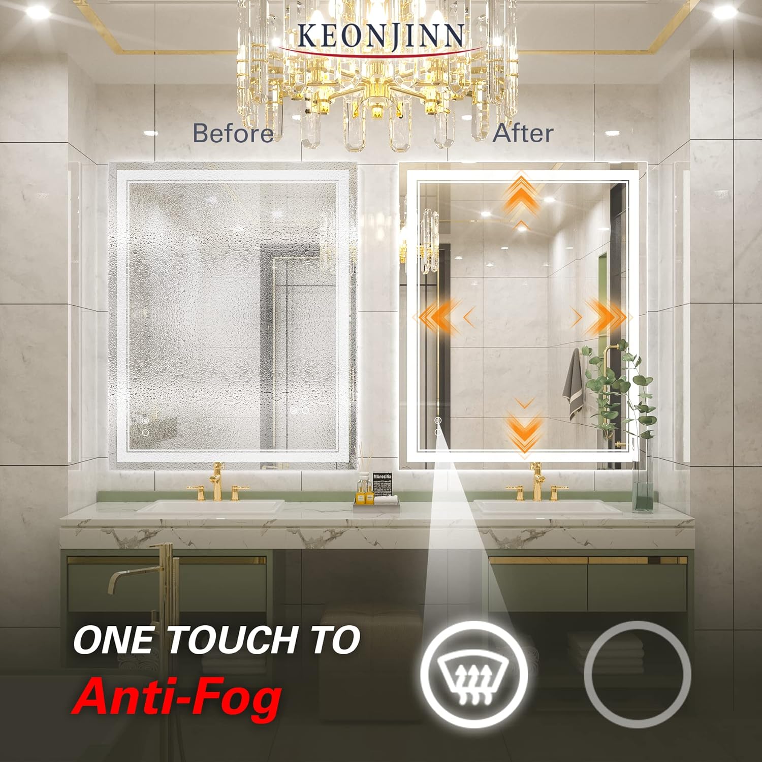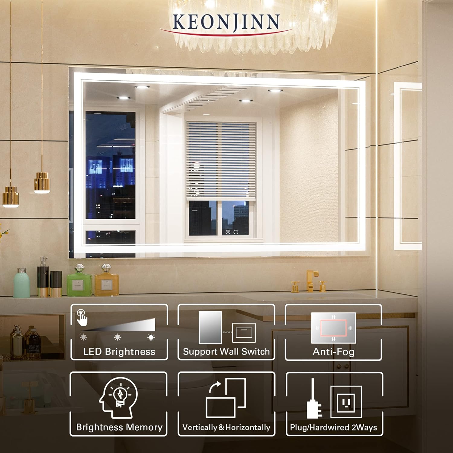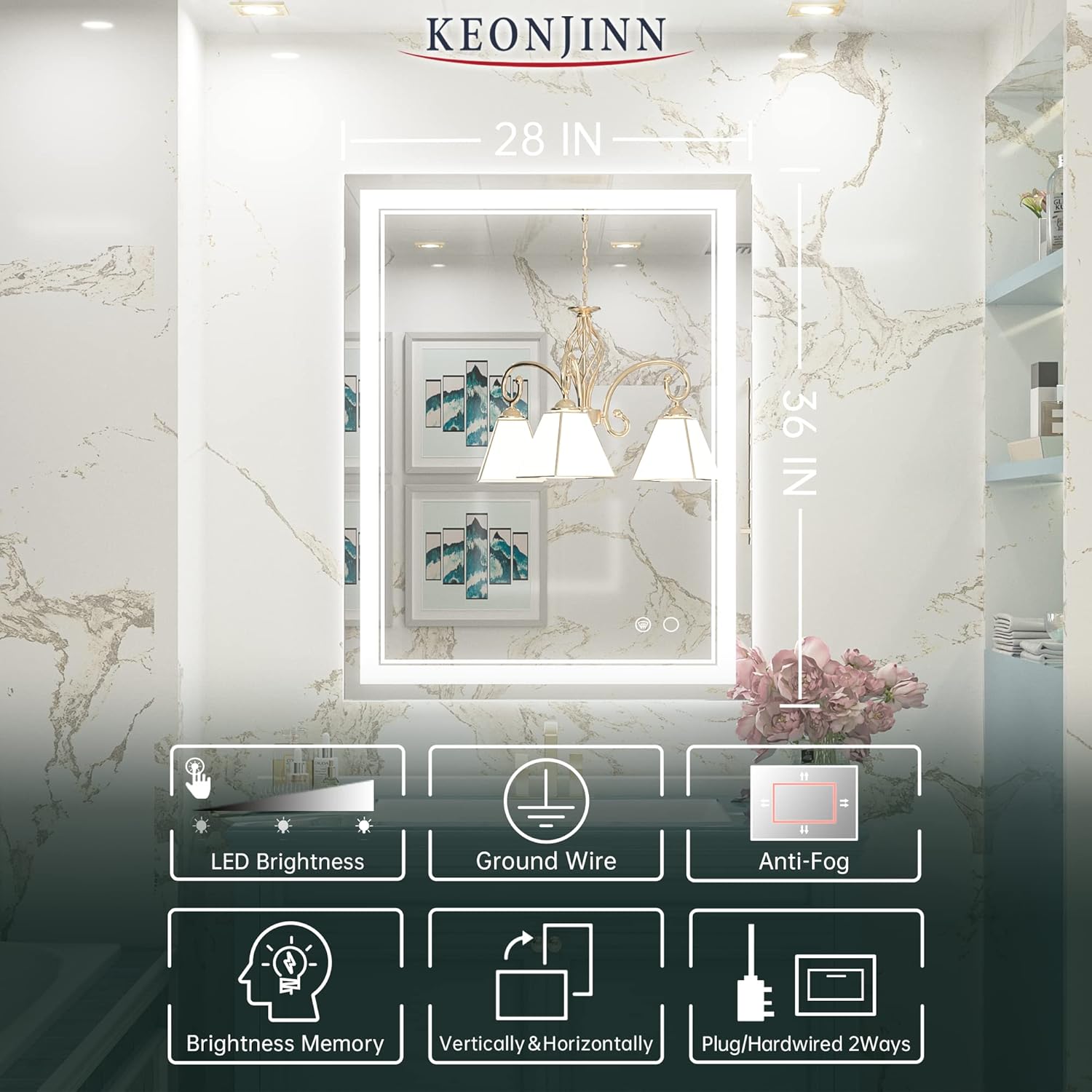 • 【Tempered Glass & Packaging】 Strong and safe tempered glass are resistant to breakage, ensuring your daily use for safety. Newly improved packing greatly reduces damage during transportation. Keonjinn led mirrors have passed all tests including dropping test, impact test, heavy pressure test etc.