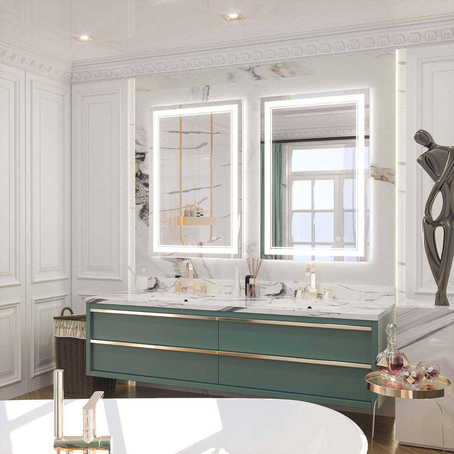 • 【Easy Flexible Installation】Super easy to install with French cleat brackets. Our bathroom mirror with lights support normal wall switch control and can be connected using plugs or hardwired. Can be installed in bathroom, bedroom and the room you want to install. Only plays an auxiliary role in the brightness of the room, and is not recommended as a separate lighting.