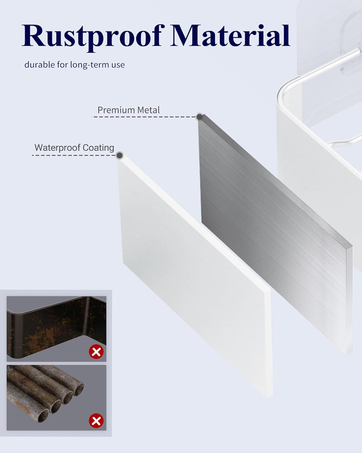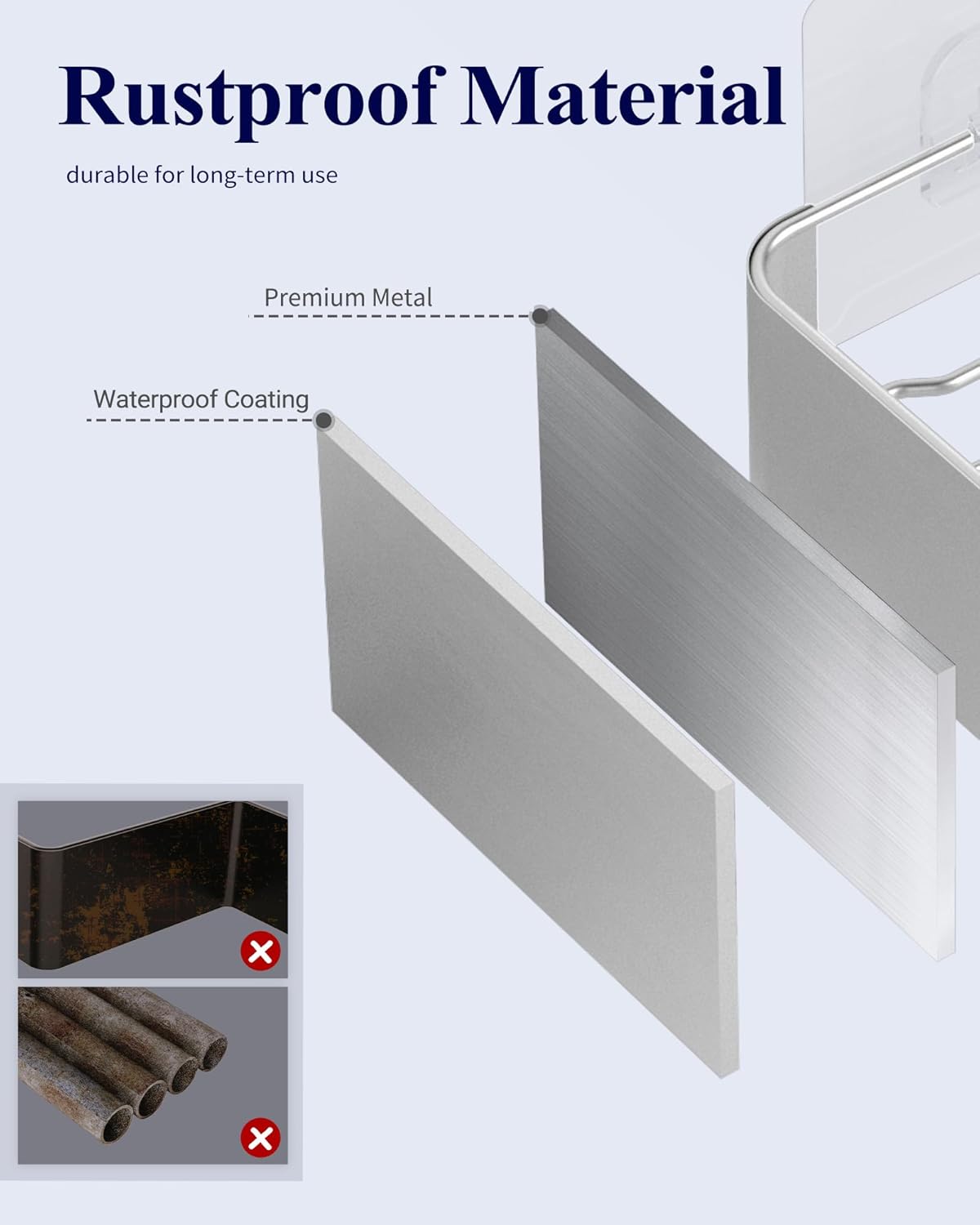 •  PREMIUM RUSTPROOF MATERIAL: Kitsure shower racks for inside shower feature 100% stainless steel and thickened coating, which is rustproof, waterproof, scratch-free, and durable for long-term use. In addition, with a smooth and easy-to-clean surface, you can just rinse the shower caddy and leave it to air dry.