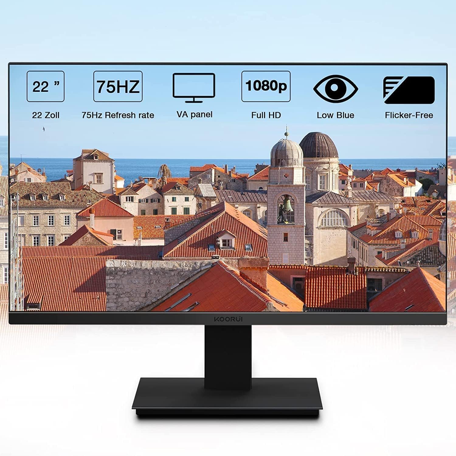 KOORUI 22 Inch Computer Monitor, FHD 1080P VA Desktop Display, 75HZ Ultra Thin Bezel/Eye Care/Ergonomic Tilt, HDMI VGA Ports LED Monitor for PC, VESA Mounting