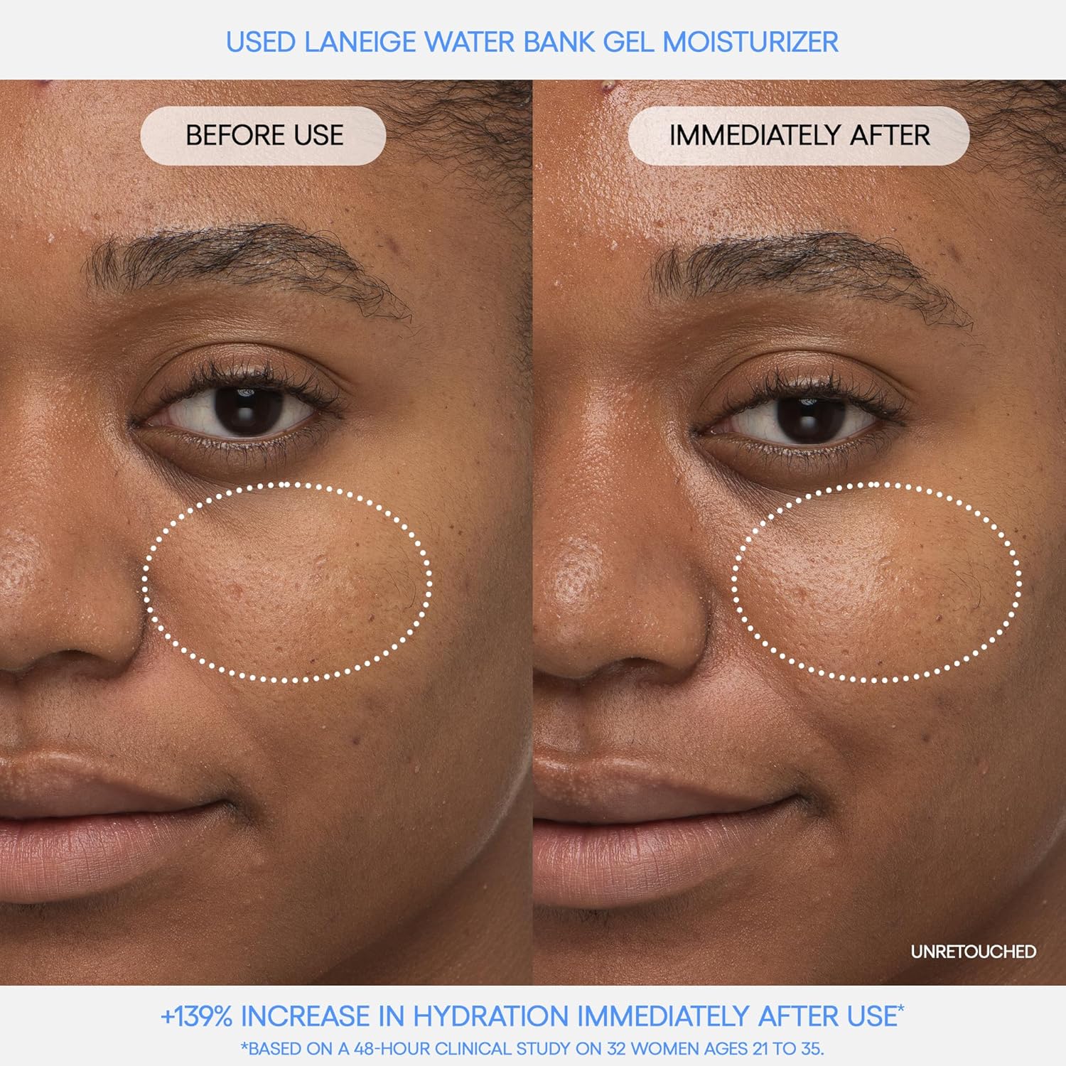 LANEIGE Water Bank Blue Hyaluronic Gel Moisturizer is a lightweight, fast-absorbing face gel that delivers deep hydration with Blue Hyaluronic Acid and soothing mint extract. Hypoallergenic and dermatologist-tested, it's perfect for oily to combination skin, leaving it refreshed, balanced, and comfortably hydrated.