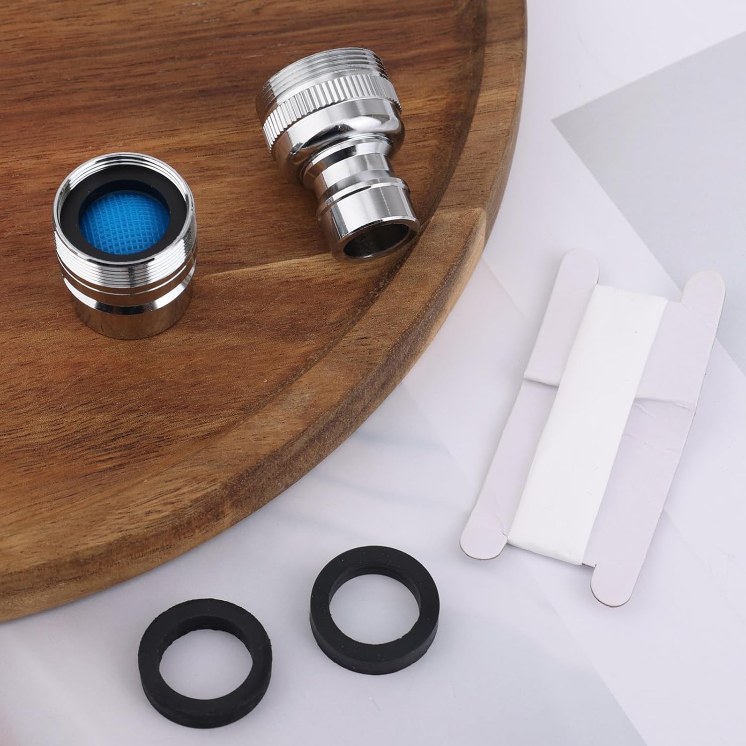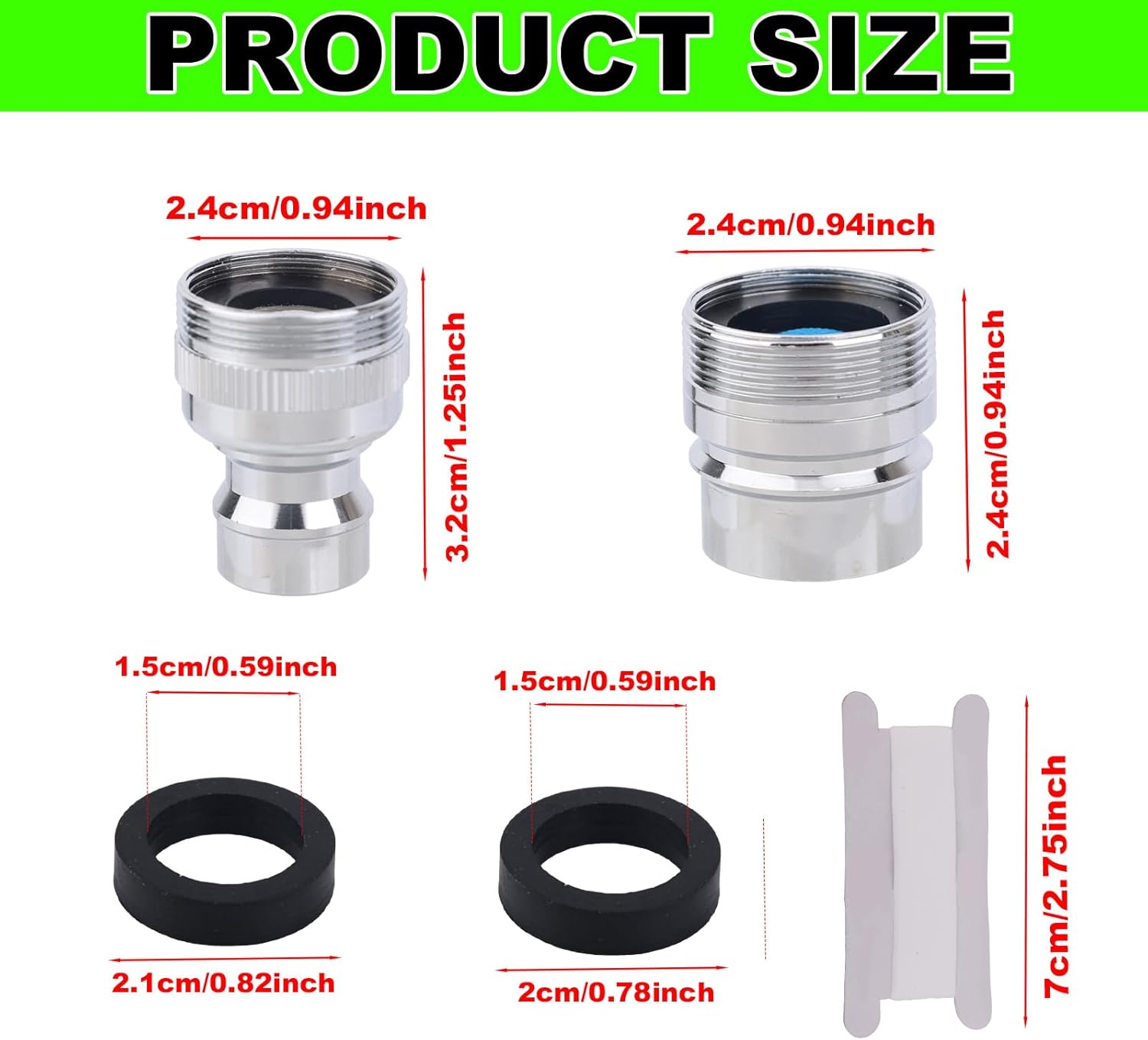• Product Material: The faucet adapters are made of good-quality copper with chrome plating, reliable, strong and can withstand daily use. Enjoy long-lasting performance and leak-free connection every time you use it.