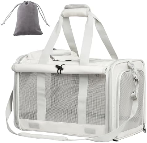 - [SAFE DESIGN] - The soft cat travel carrier bag features an upgraded structural design of stainless steel and fiber rod, ensuring that our cat carrier bags for small dogs will not deform or sag, and the top will not collapse, providing preferable stability. It has a built-in adjustable rope buckle for easy locking of the collar. It is collapsible for easy storage.