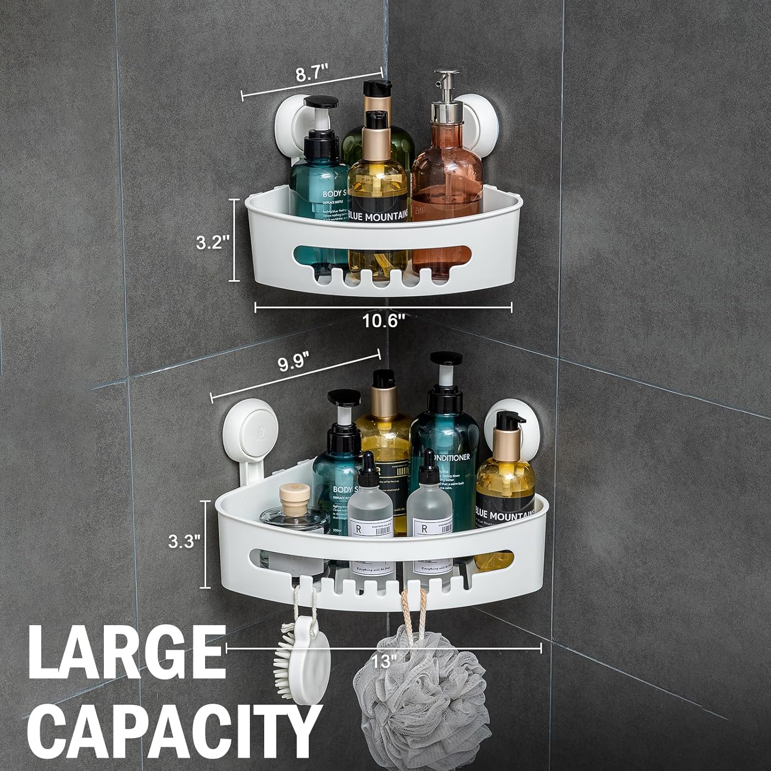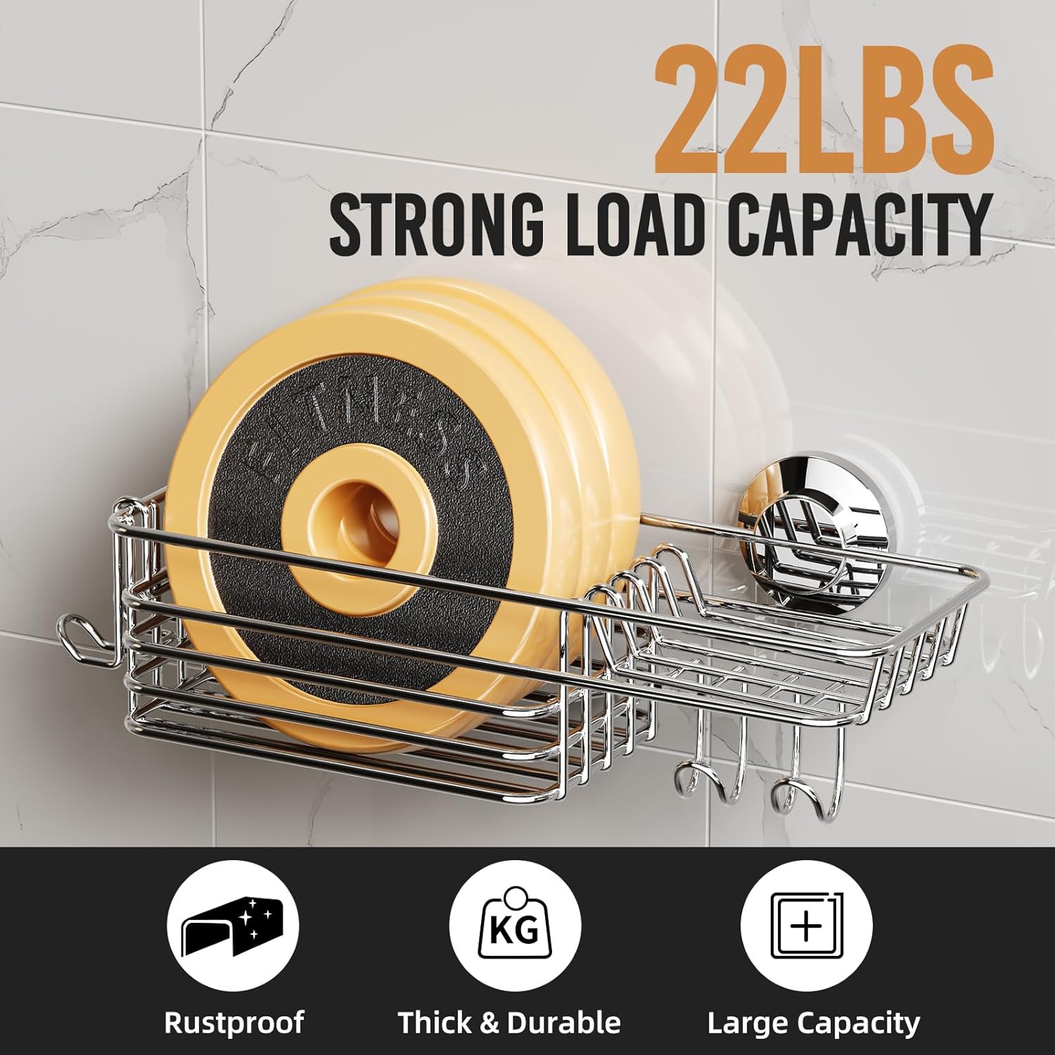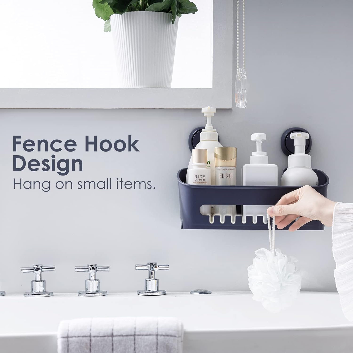 • Powerful & Durable Suction: TPE Suction Cup with bionic design of octopus tentacles and ABS plastic Hook ensures weather proof(-4°F-174°F), waterproof, and anti-aging; bathroom shower organizer with thicken plastic can hold up to 10KG / 22lbs and stick sturdy for years after installation without any concerns