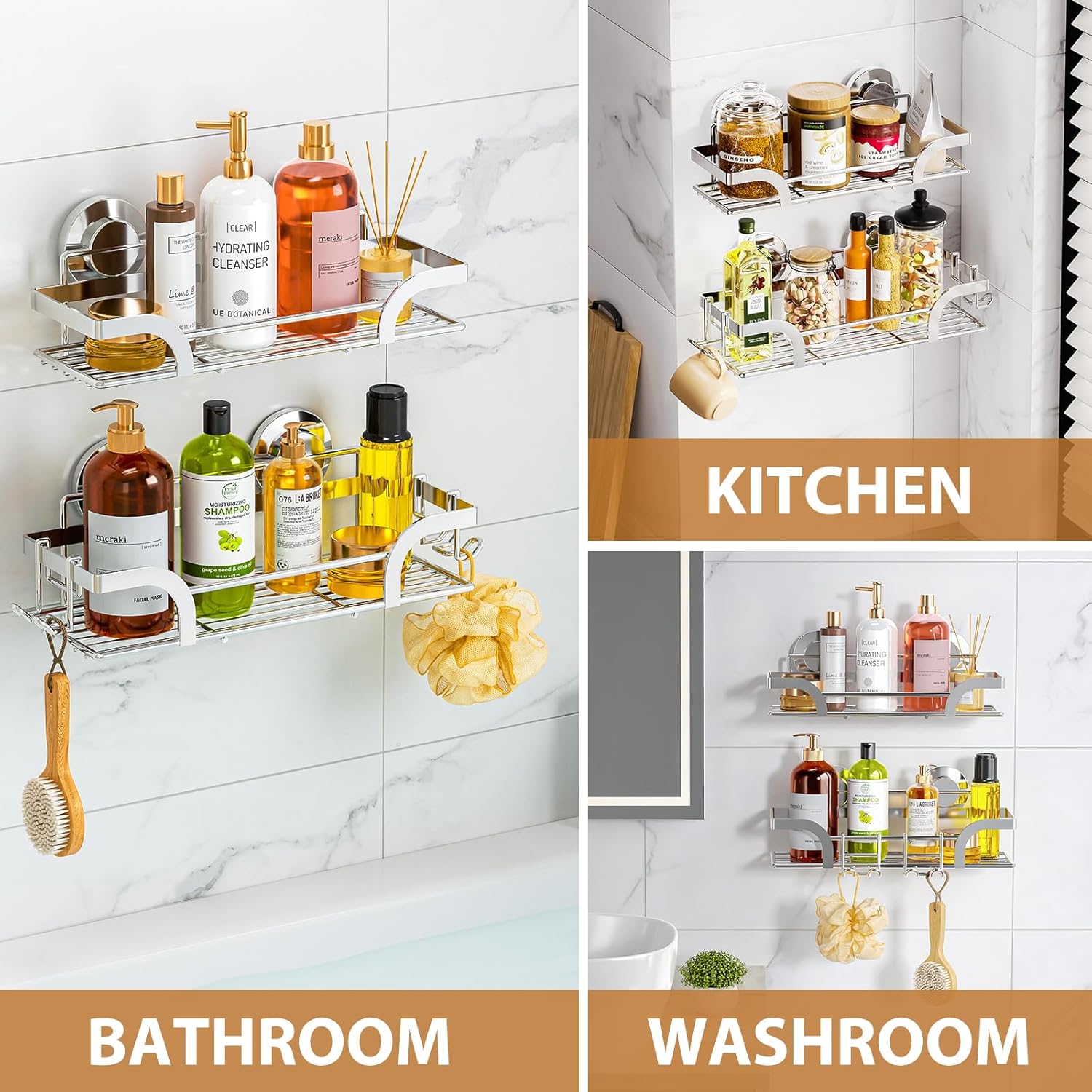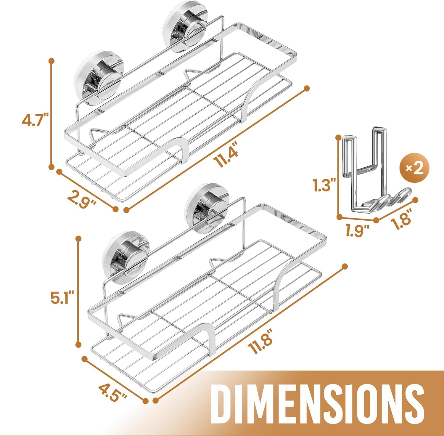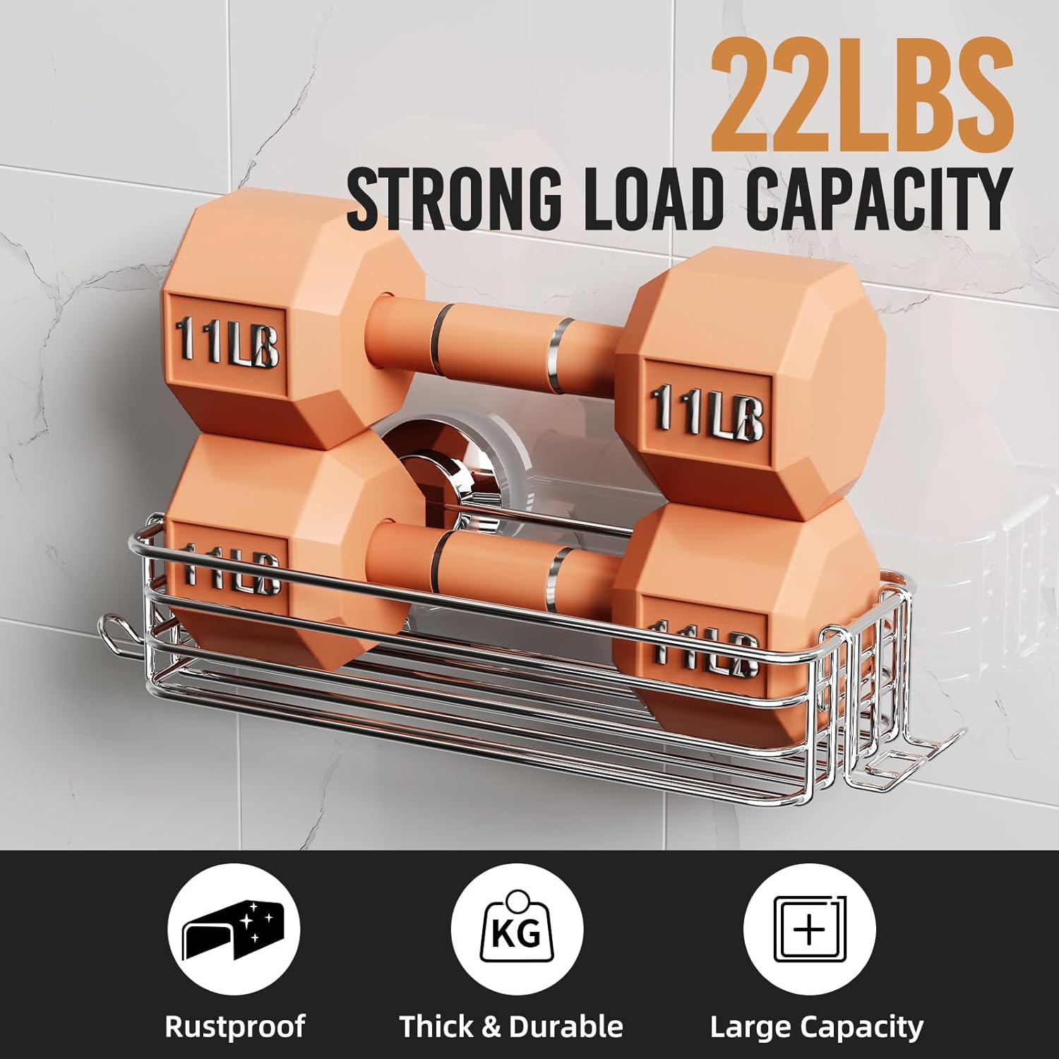 • Powerful & Durable Suction: TPE Suction Cup with bionic design of octopus tentacles and ABS plastic Hook ensures weather proof(-4°F-174°F), waterproof, and anti-aging; bathroom shower organizer with thicken plastic can hold up to 10KG / 22lbs and stick sturdy for years after installation without any concerns
