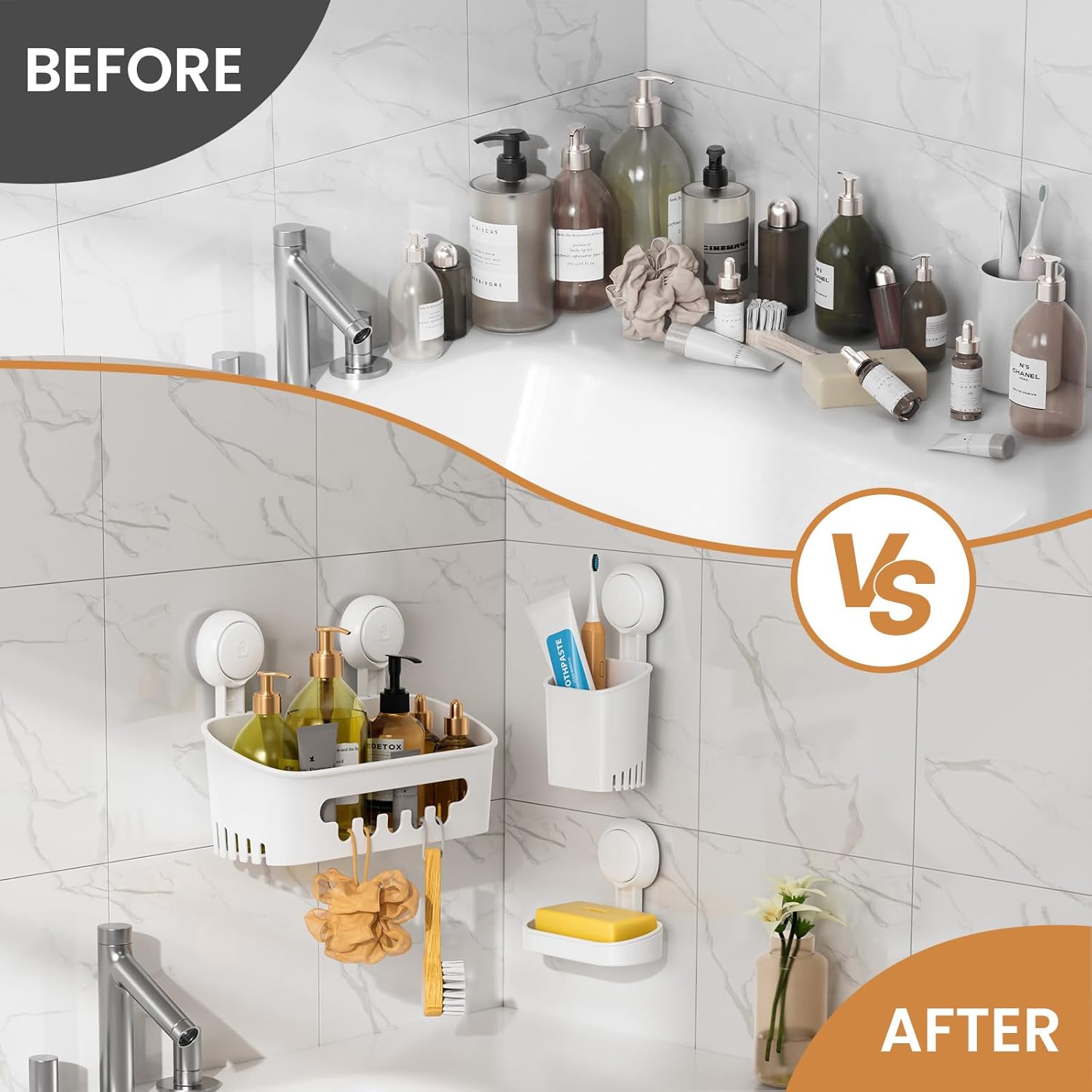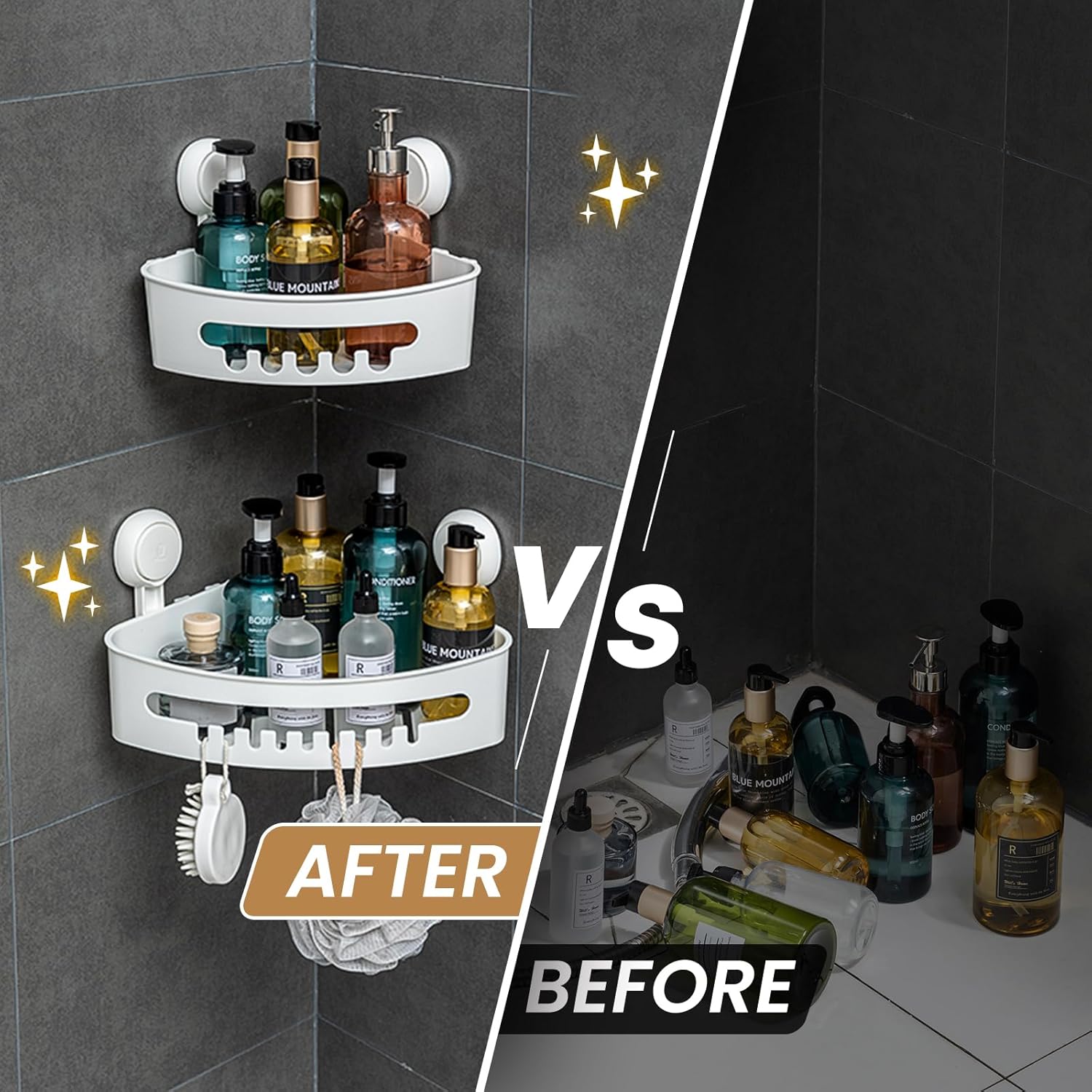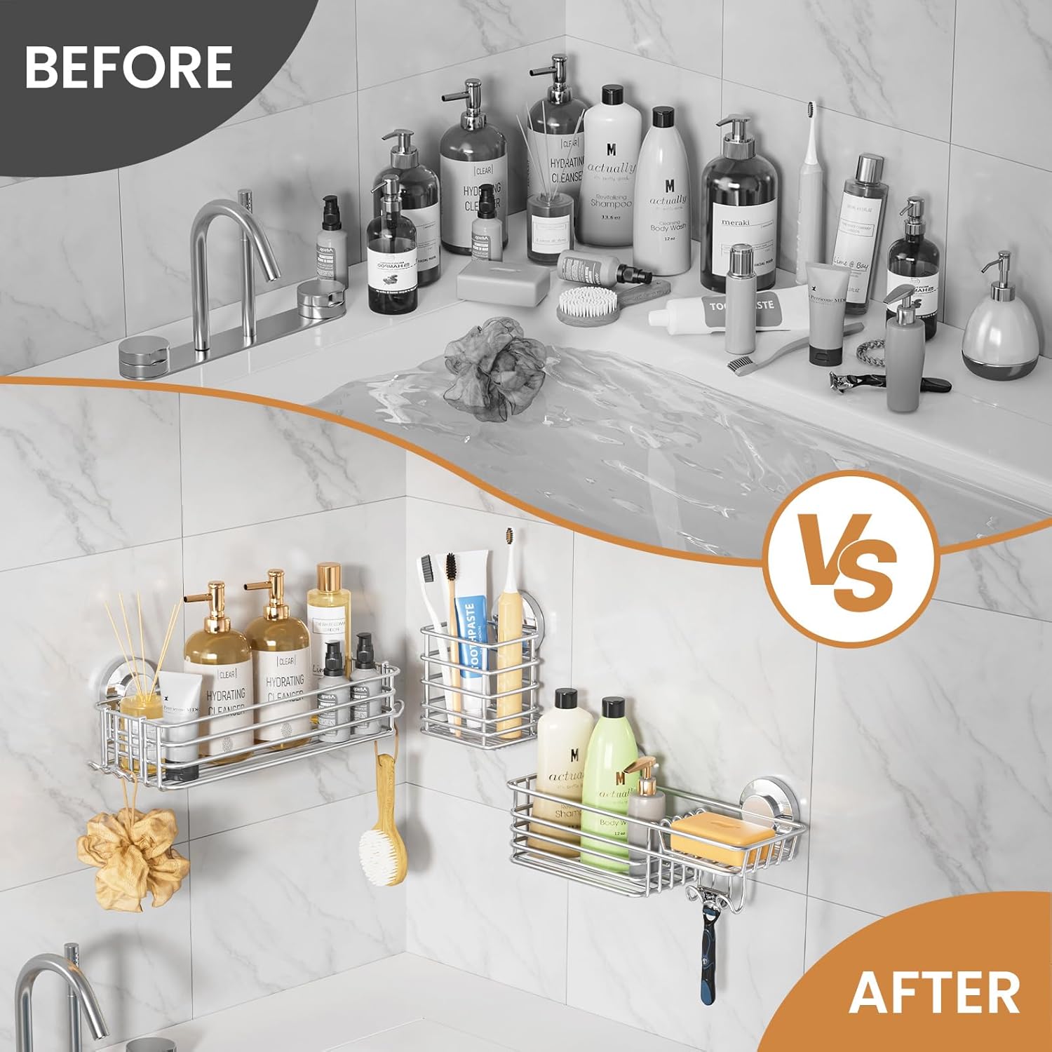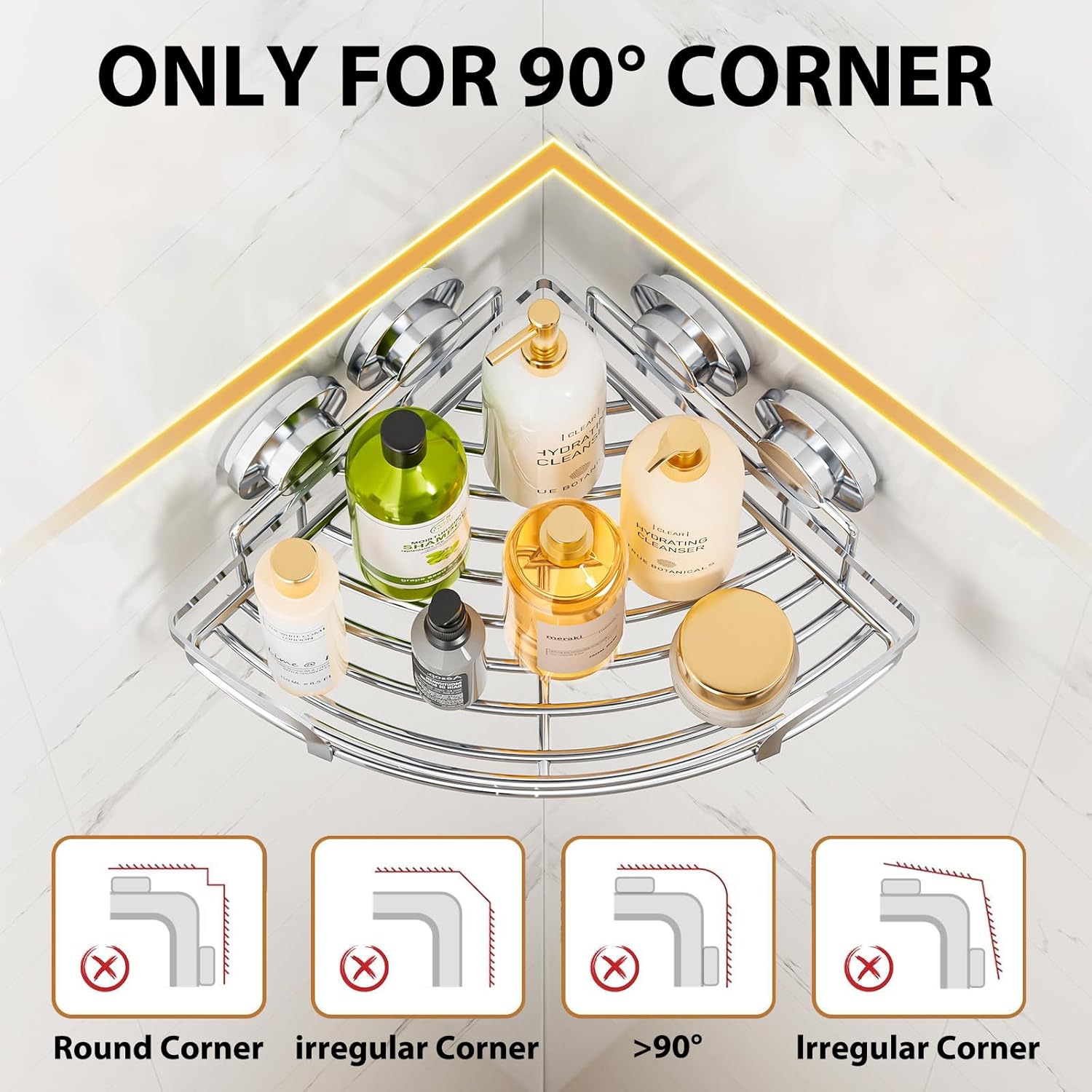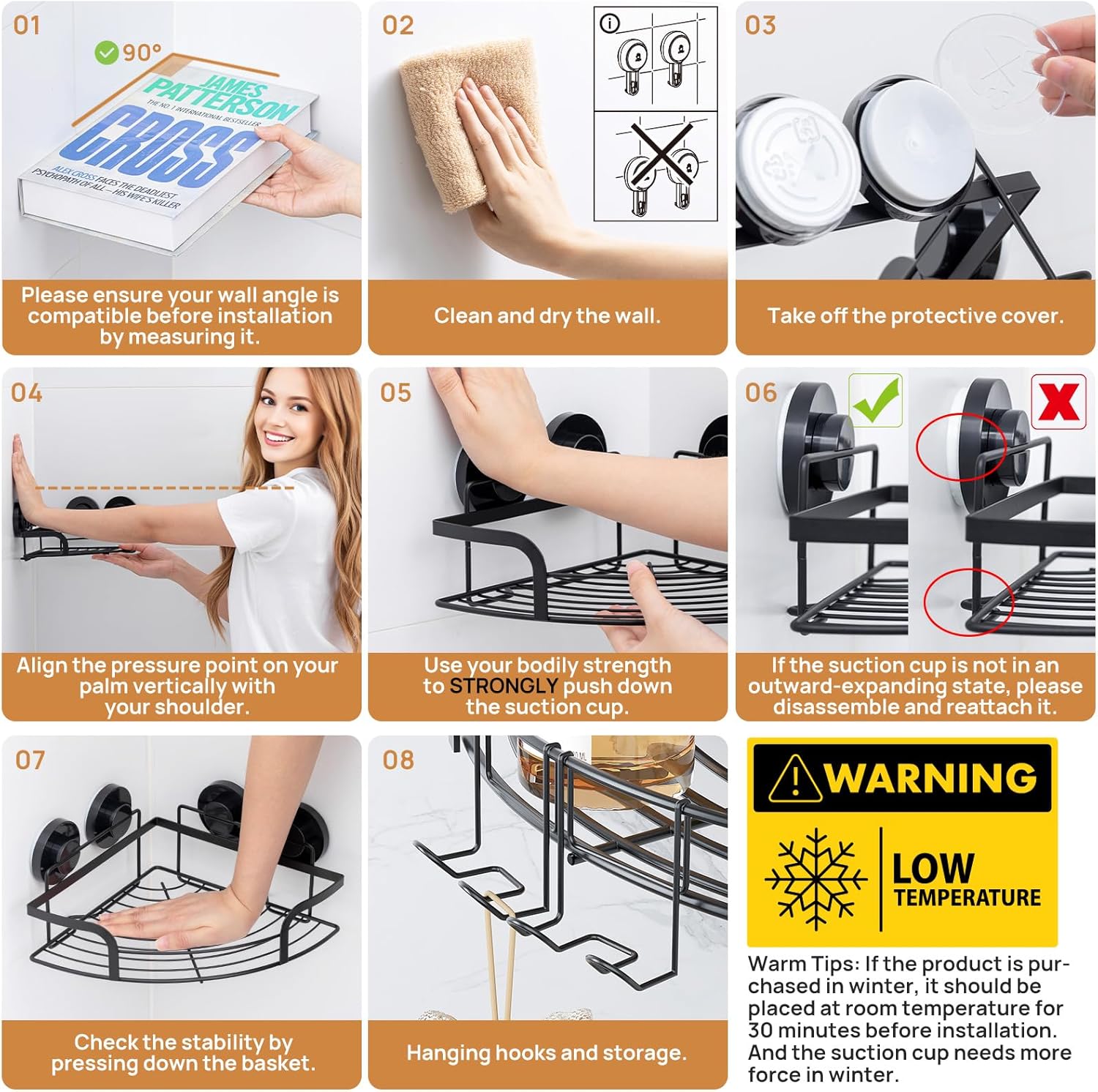 • One Second Installation & Remove: No drilling, No glue, No tools and No need to wait to apply the shower caddy. Simply choose a smooth and dry surface without any grout, take off the protective cover and push the board "PUSH" hard until you hear "PUFF", ONE second to complete the installation. The suction cup is removable without leaving any marks, so you can adjust height and position whenever you want