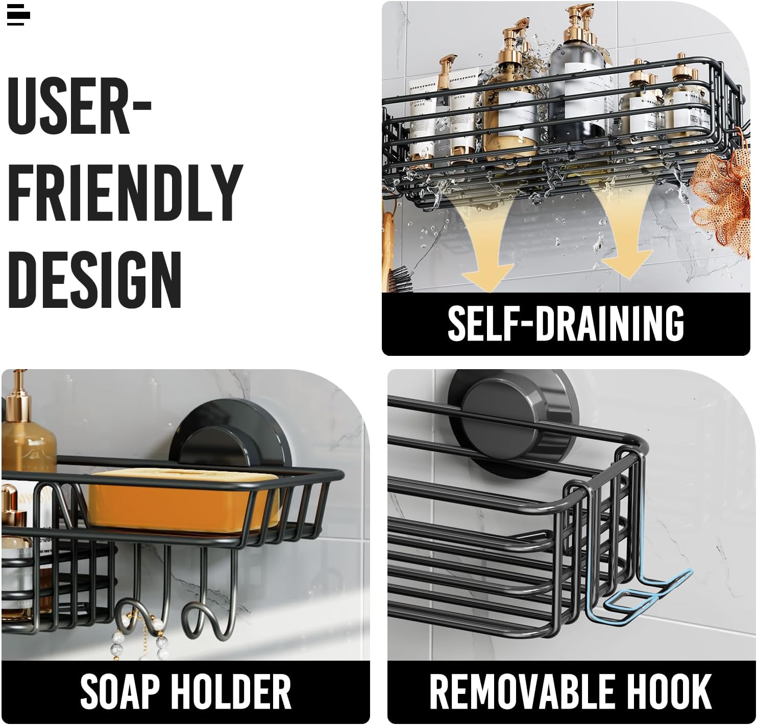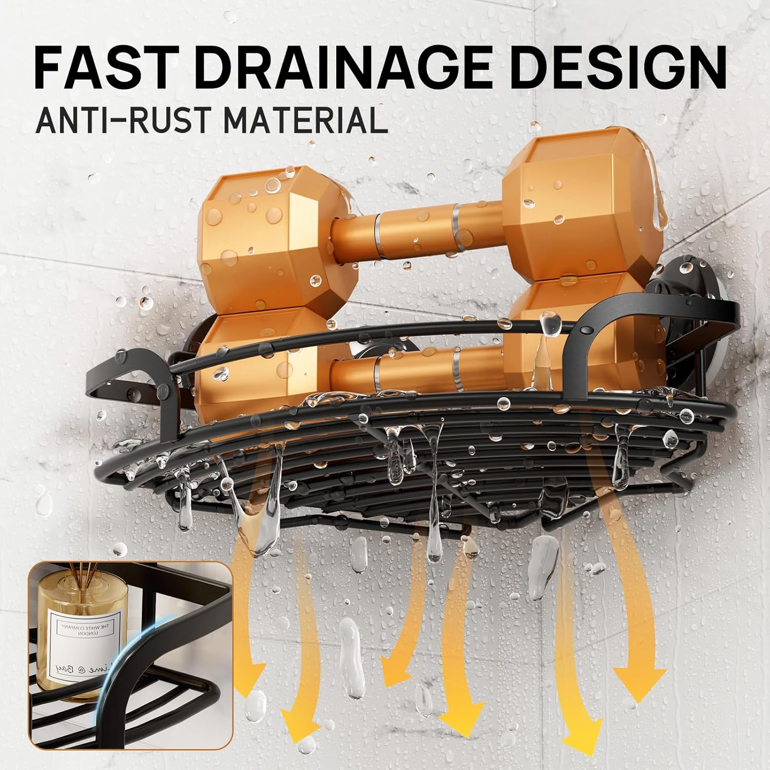 • Rustproof & Fast Draining: Shower shelves for inside shower is made of Stainless Steel which not only prevents rust but also stands up to times. Whit all-around drainage design, the black shower caddy has maximum air ventilation and water dripping away. Keep your bath products air dry quickly and clean