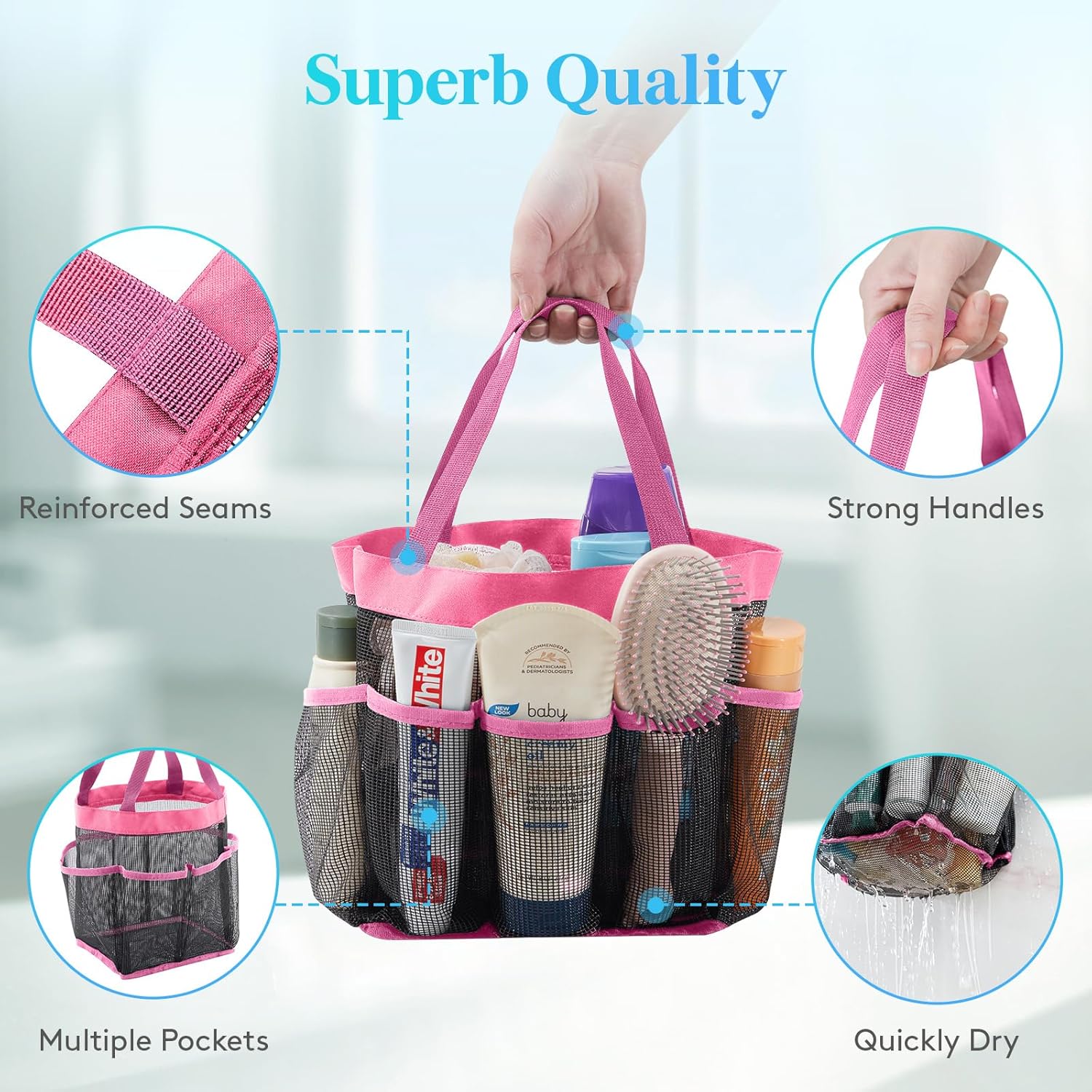 • Superb Quality: The shower bag is breathable and lightweight. The wide reinforced handles are strong, durable and won't pinch your hands. This travel shower caddy can be hung from doors, shower heads and hooks of all kinds with ease.