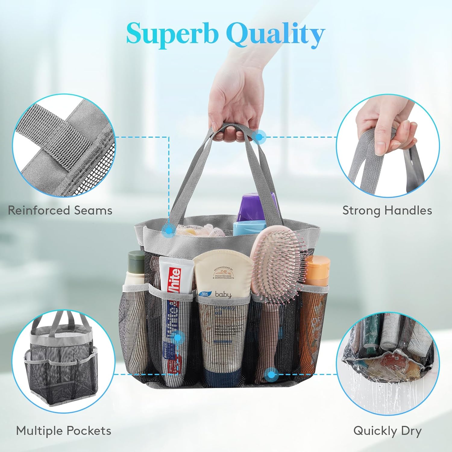 • Quick-Dry Design: The breathable mesh allows water to drain out of the caddy organizer. Simply hang it over the door, showerhead or on a hook for quick drying.