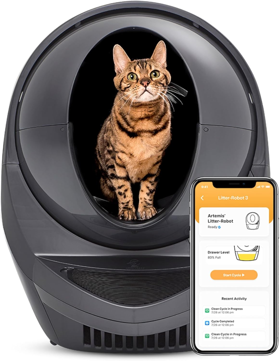 Litter-Robot 3 Connect by Whisker (Grey) Automatic Self-Cleaning Cat Litter Box, WiFi Enabled, Works with Any Clumping Litter, Never Scoop Again