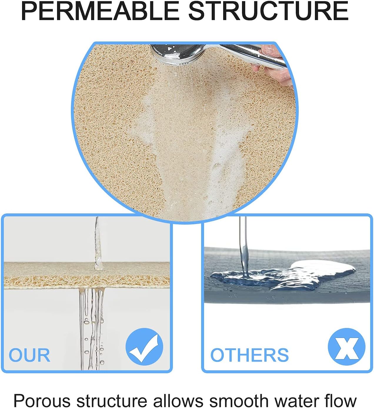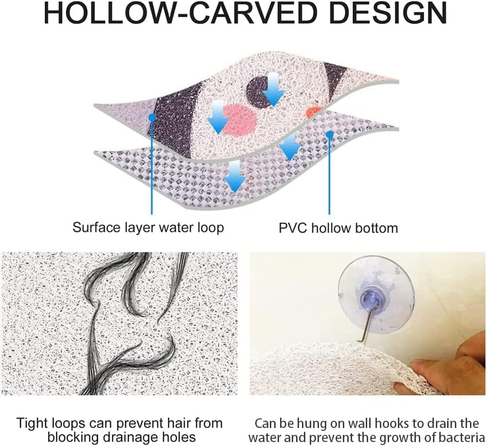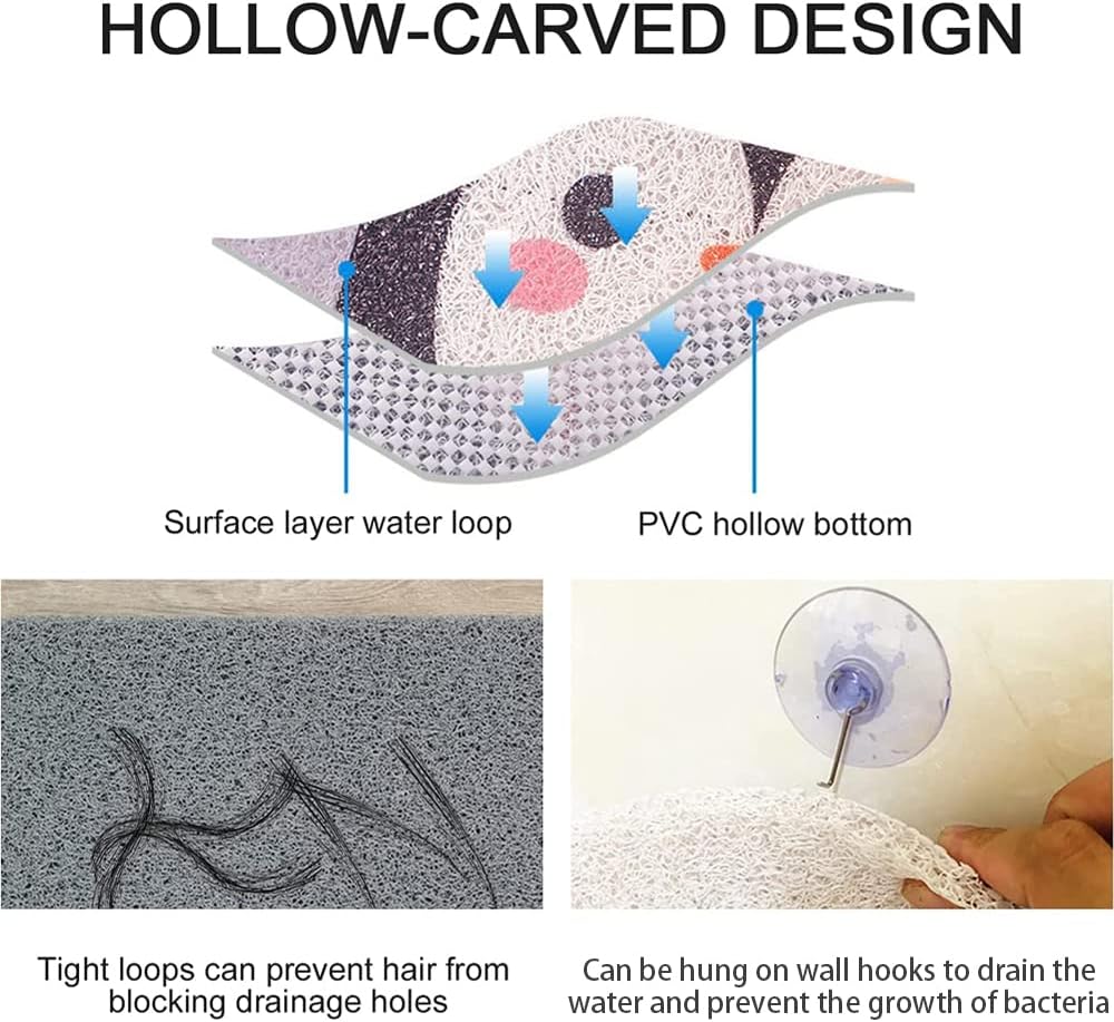 • QUICK DRAINAGE: Our anti slip shower mat with natural drainage holes, annular surface and lattice bottom which can work together to encourage water to flow past the bath mat without getting caught. The shower floor mat does catch the hairs, but helps prevent them from draining under the floor without leaving potential drainage problems