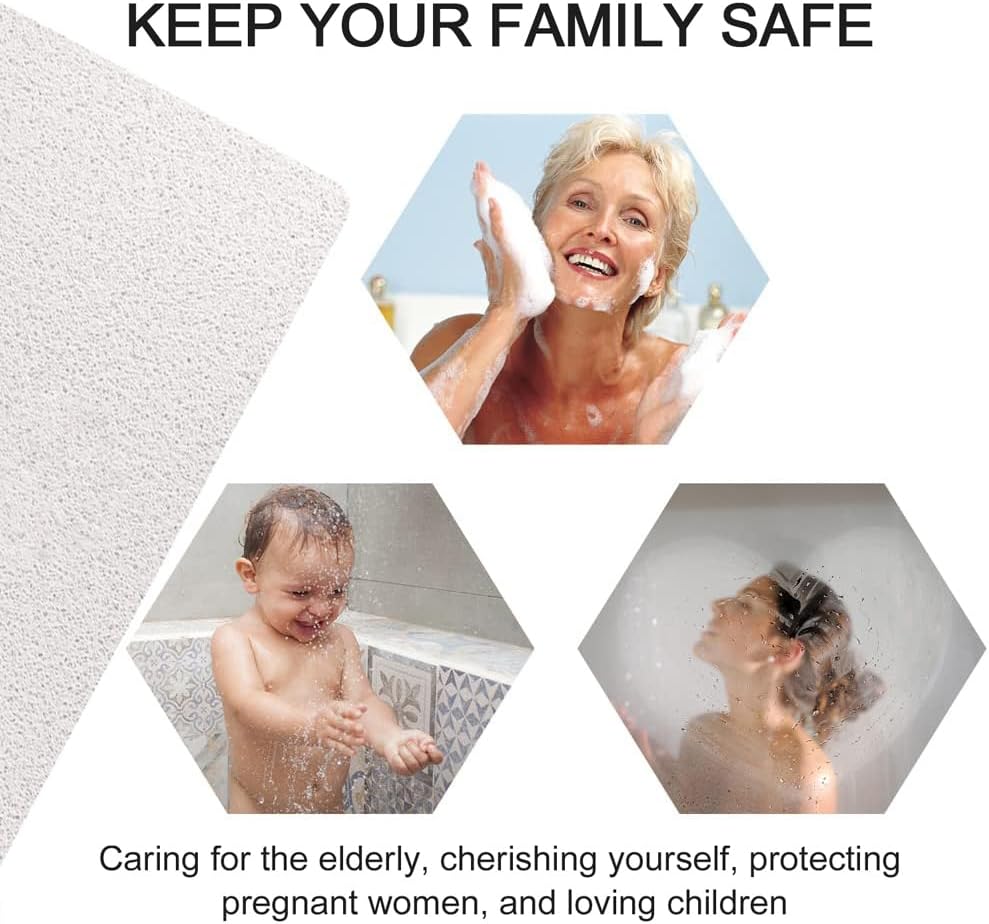 • MULTIPURPOSE: This loofah anti-slip shower mat can be perfectly applied whether it is inside or outside your bathtub, shower room, and washbasin. Can be used as shower mat/bath mat/bathtub mat/massage mat. The fashionable design brings a warm and comfortable feeling to your room. Ideal for use in your private home and public places, like restaurants, hospitals, nursing homes, schools, etc