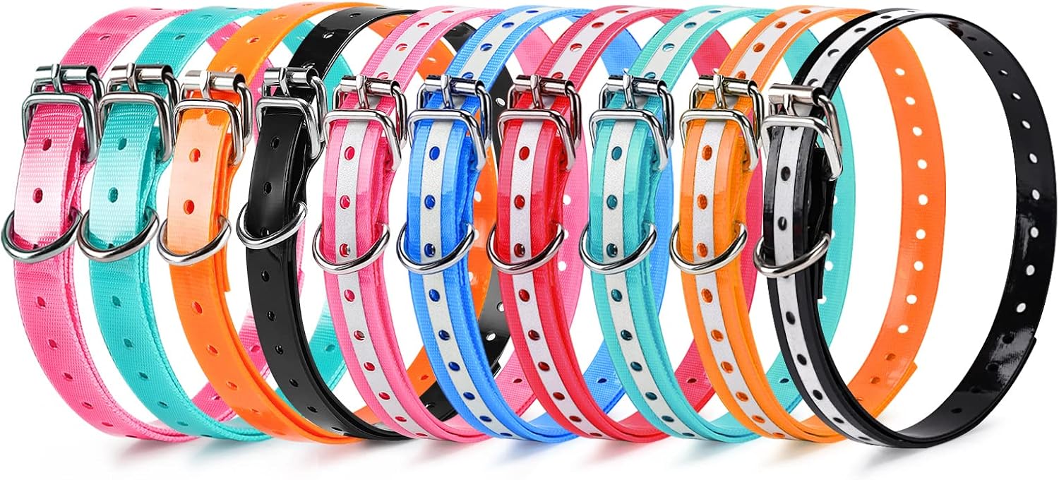 LuckinPET Replacement Collar Strap for Most Brands Shock Collar / Invisible Fences We used metal buckle and D ring with 35 adjustment holes. Cut to size for custom fit. Hi flex 3/4 inches x 28 inches collar strap which compatible with Garmin, SportDog, PATPET, Garmin Delta, Tri-Tronics Dogtra PetTech PetSpy Petsafe Petrainer Educator Esky Mothca, iPets +More. It's a perfect choice to refresh your pet's dog training, fence collar. Keep 'em safe, stress free. We used the NEW TPU material which is resin but plastic exactly. The odorless and waterproof material which keeps its flexibility in cold weather (remains soft & flexible to -50 degrees F). It is soft and comfort but not sticky. High resistance to oils and abrasion while more durable than rubber or plastic. It's an alternative upgrade collar for PVC/Nylon/Leather collars.