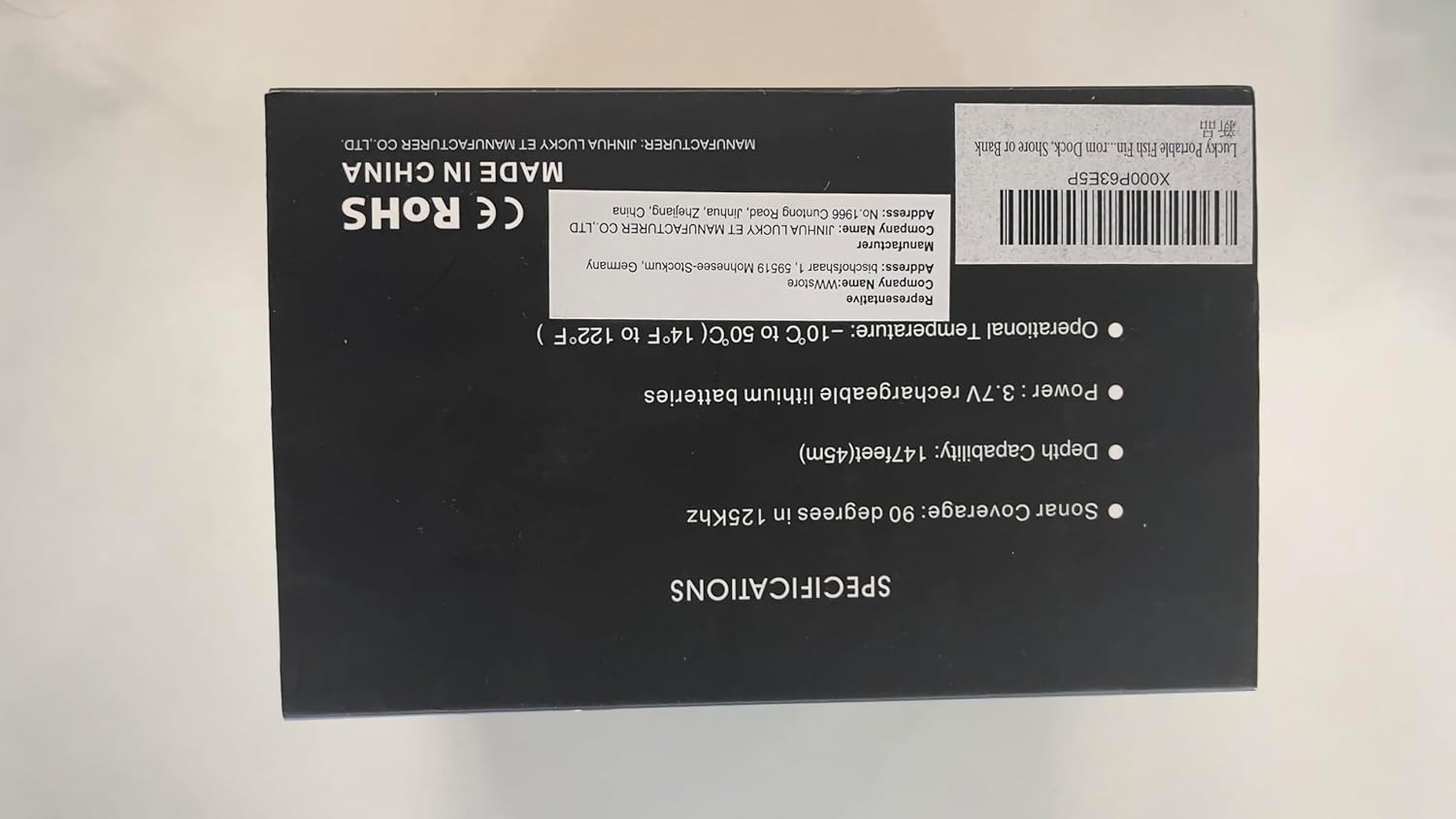 • Sonar Coverage: 90 degrees beam angle in 125Khz;Wireless operational Range: 328feet(100m)