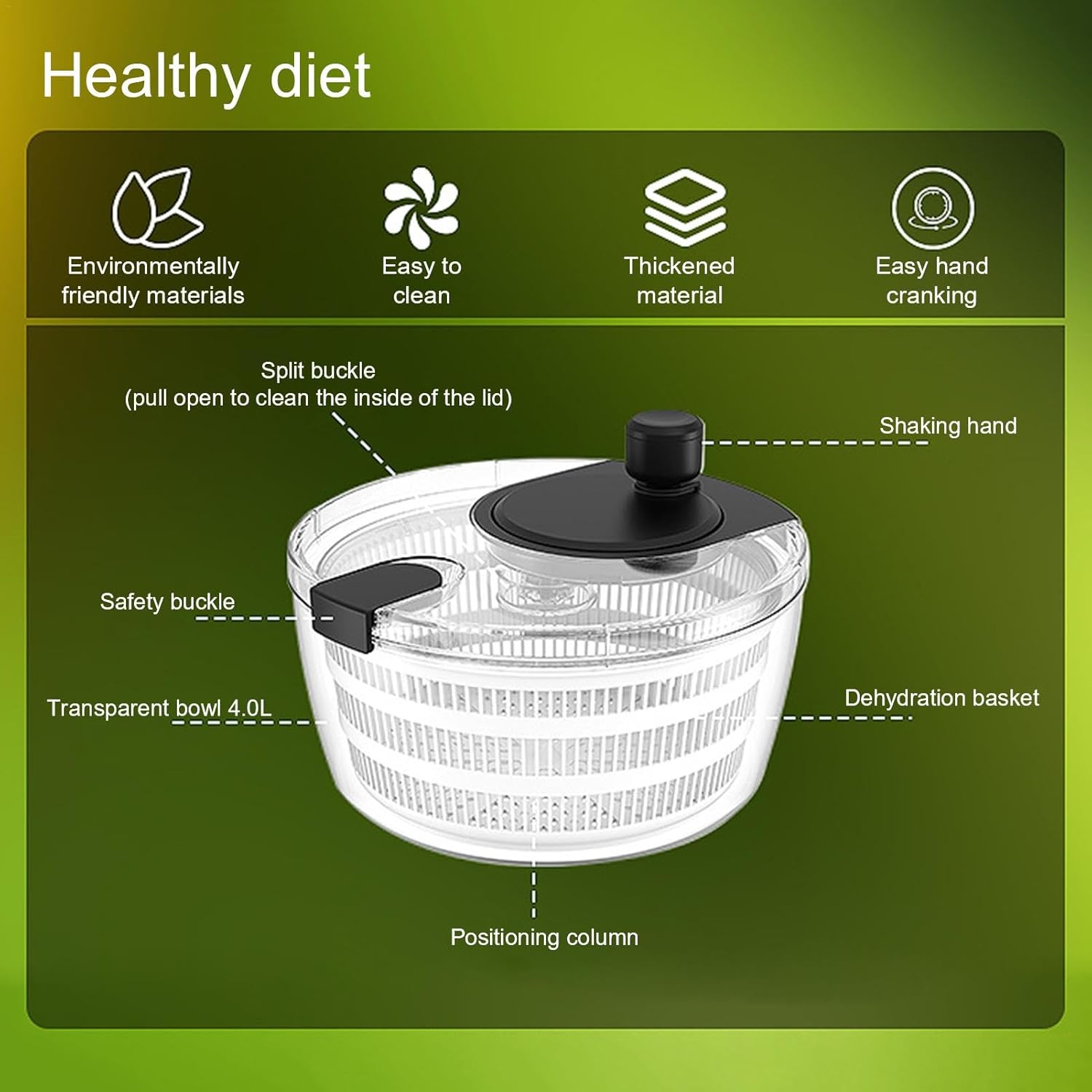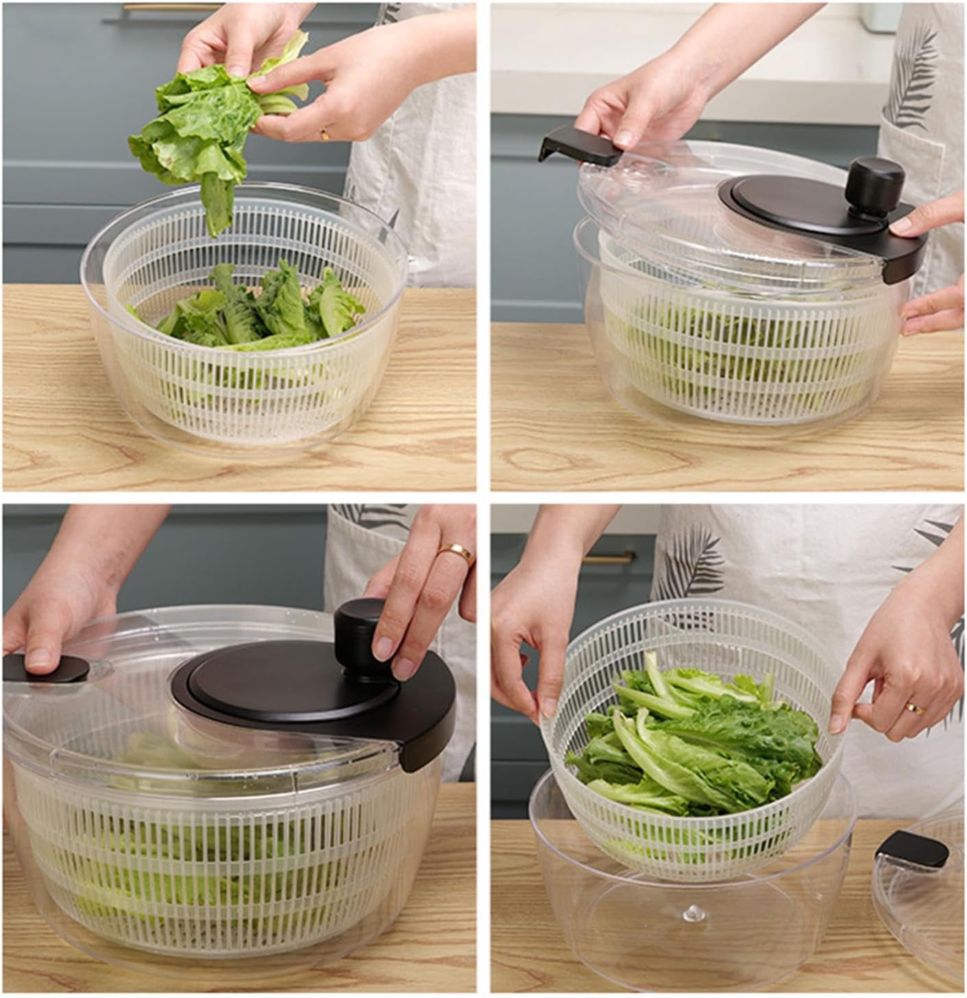 Manual Salad Spinner, Fruit Spinner and Strainer, Manual Lettuce Spinner with Secure Lid, Fruit Washer Spinner Bowl, Split Structure Lettuce Spinner with Bowl and Lid for Vegetable Fruit Dryer