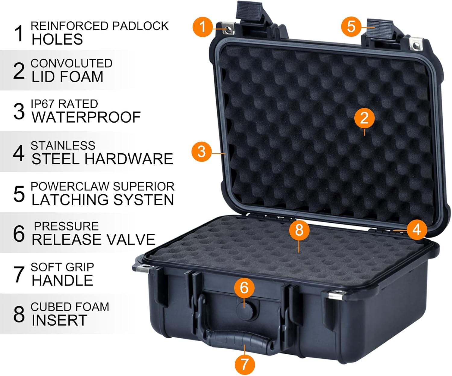 ▶ SECURE CLOSURE & PRESSURE RELEASE: Equipped with sturdy, double-throw latches for a reliable, airtight seal and a pressure release valve to equalize internal pressure during air travel or altitude changes.
