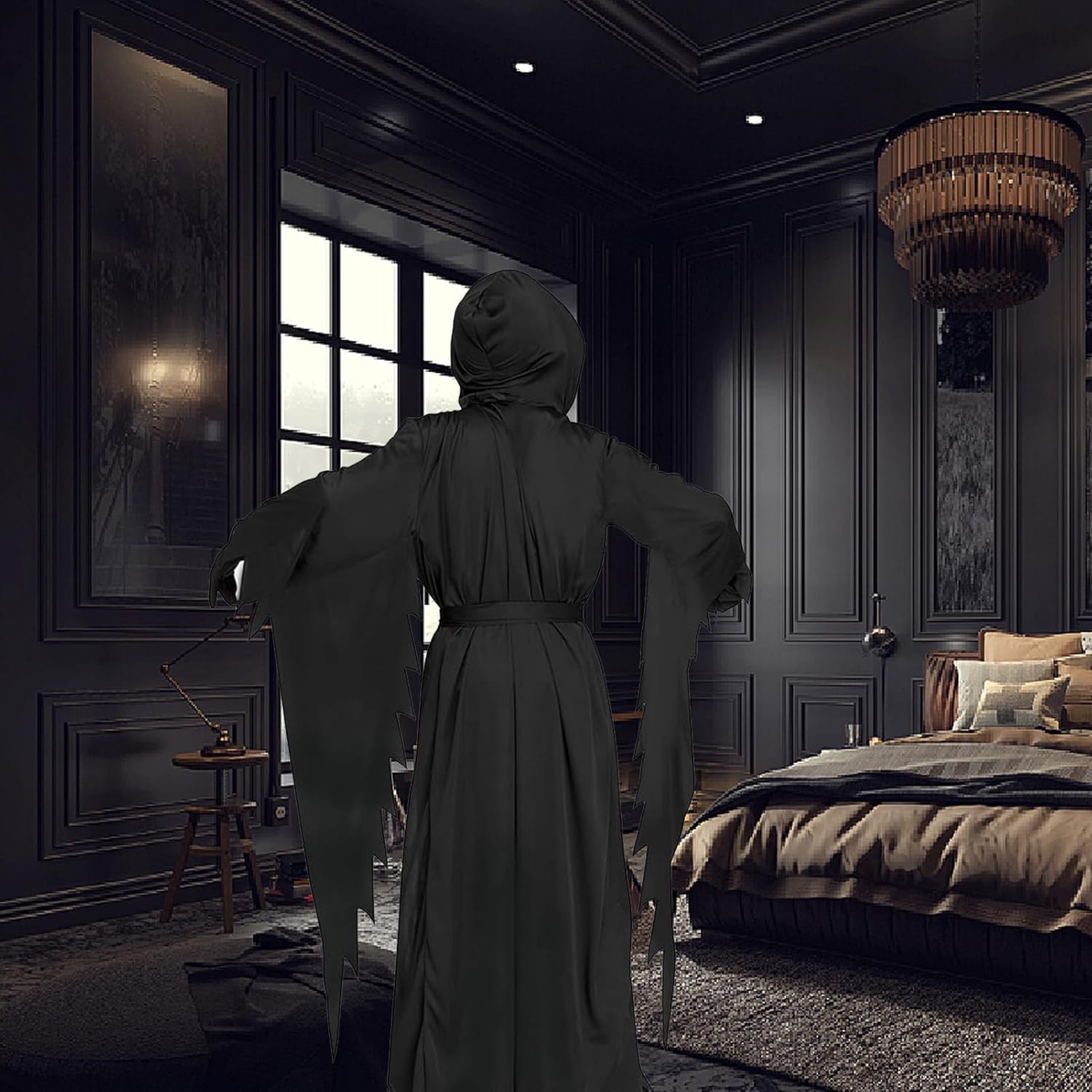 - Perfect Halloween Party: Wearing this creepy death costume will give a stunning and lasting impression at any events you attend. This black Ghostting Costume kits good for halloween dress up party, grim-reaper theme party,boys horror costume, reaper role playing