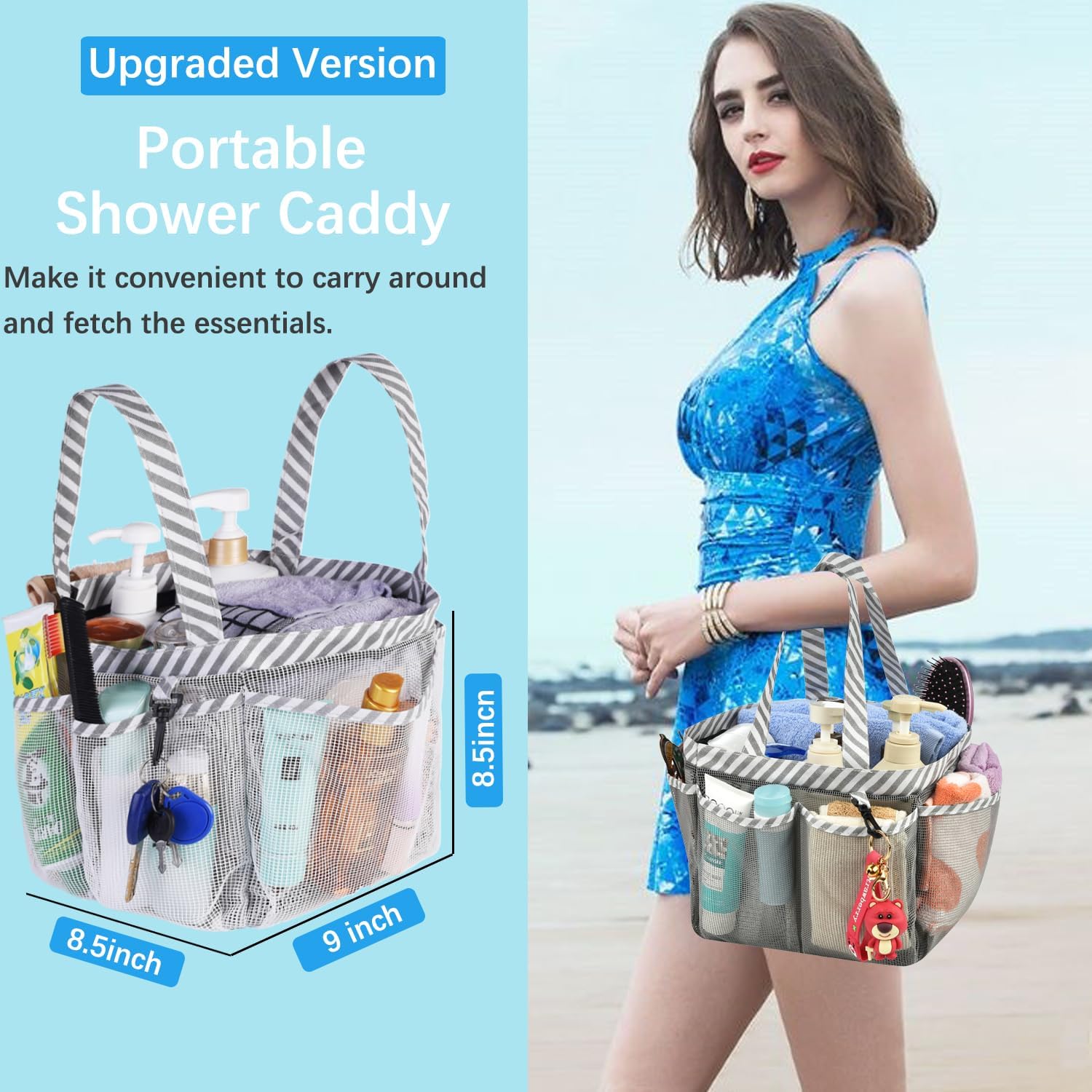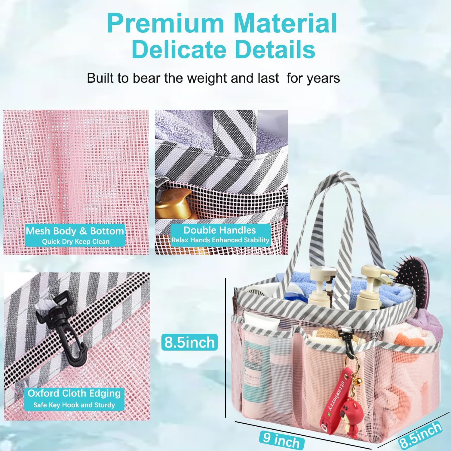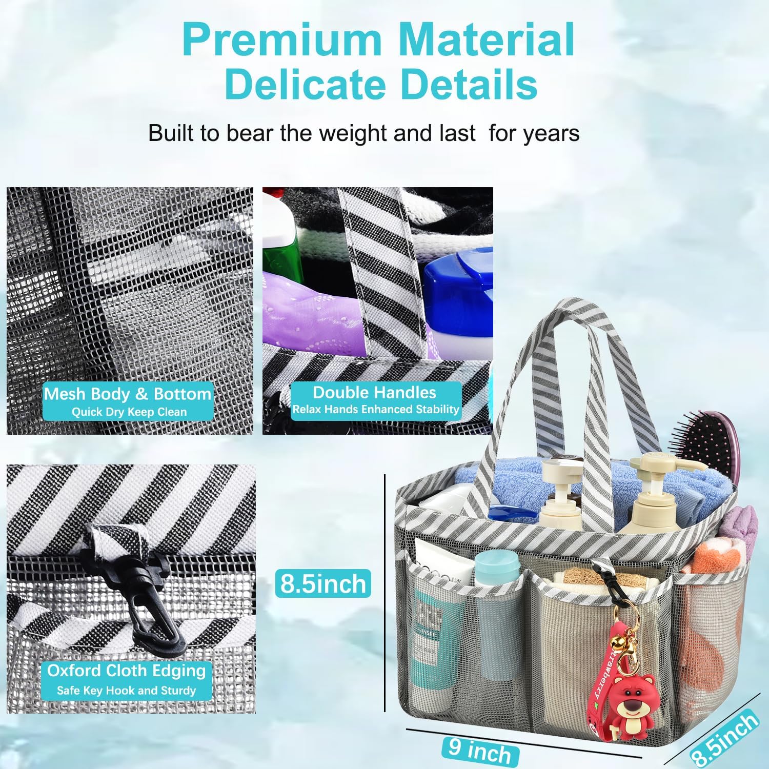Mesh Shower Caddy Tote, Large College Dorm Bathroom Caddy Organizer with Key Hook and 2 Oxford Handles, Quick Hold, 8 Basket Pockets for Camp Gym