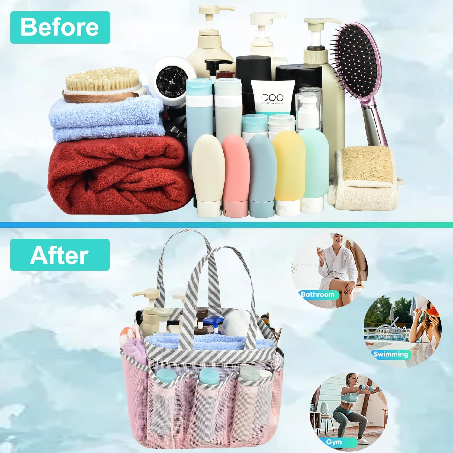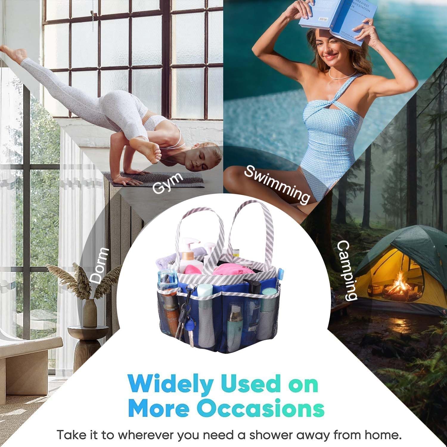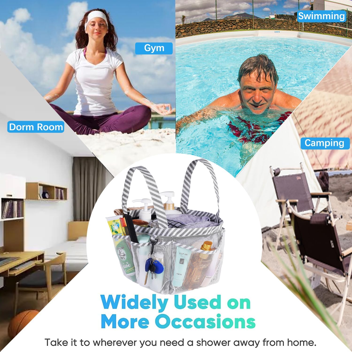 Mesh Shower Caddy Tote, Large College Dorm Bathroom Caddy Organizer with Key Hook and 2 Oxford Handles, Quick Hold, 8 Basket Pockets for Camp Gym