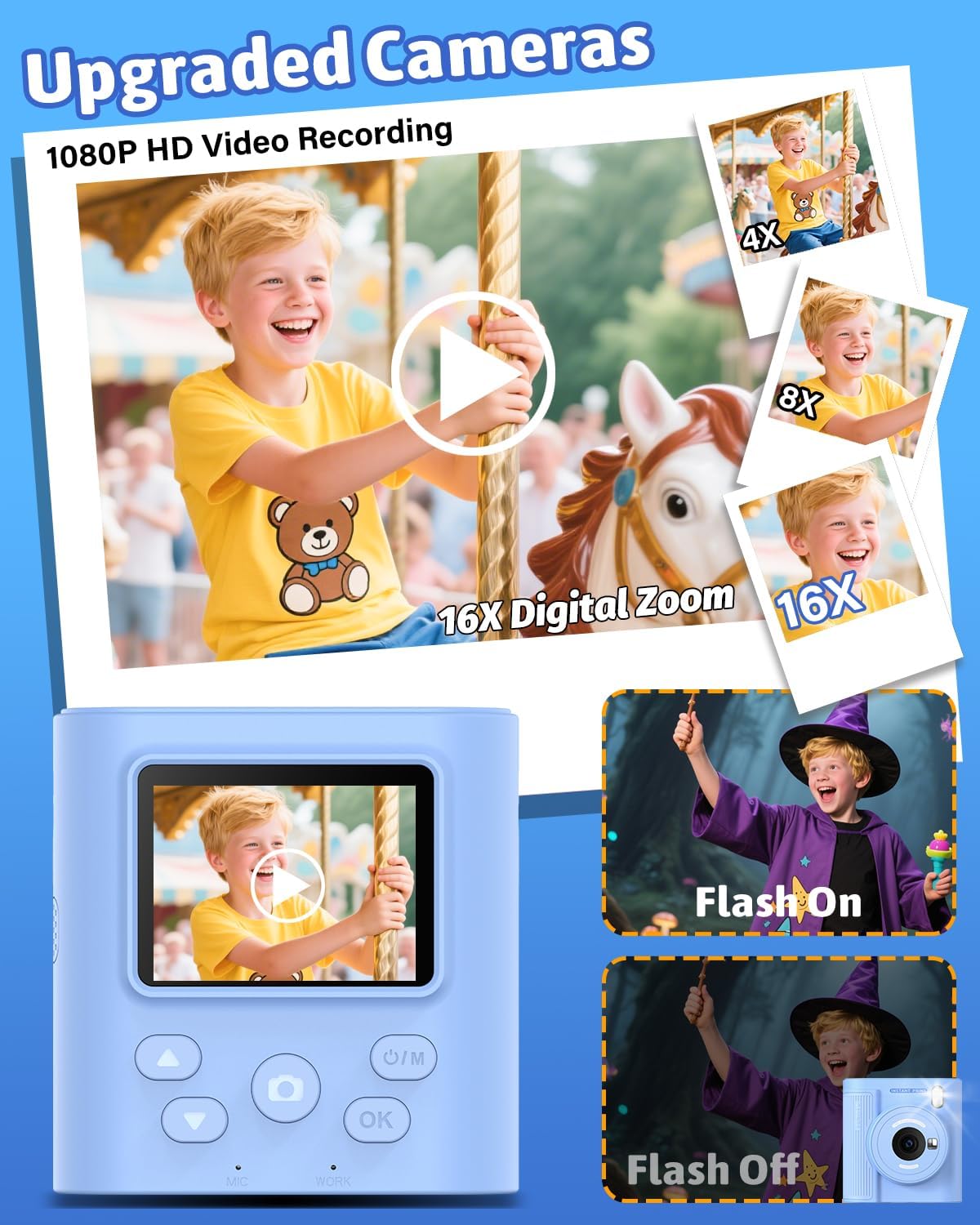 • Mgaolo Kids Camera with Instant Print, Thermal Printing Digital Camera Gift for 3-12 Years Old Children, Safe Ink-Free Design, Toy for Creativity & Learning (Black)