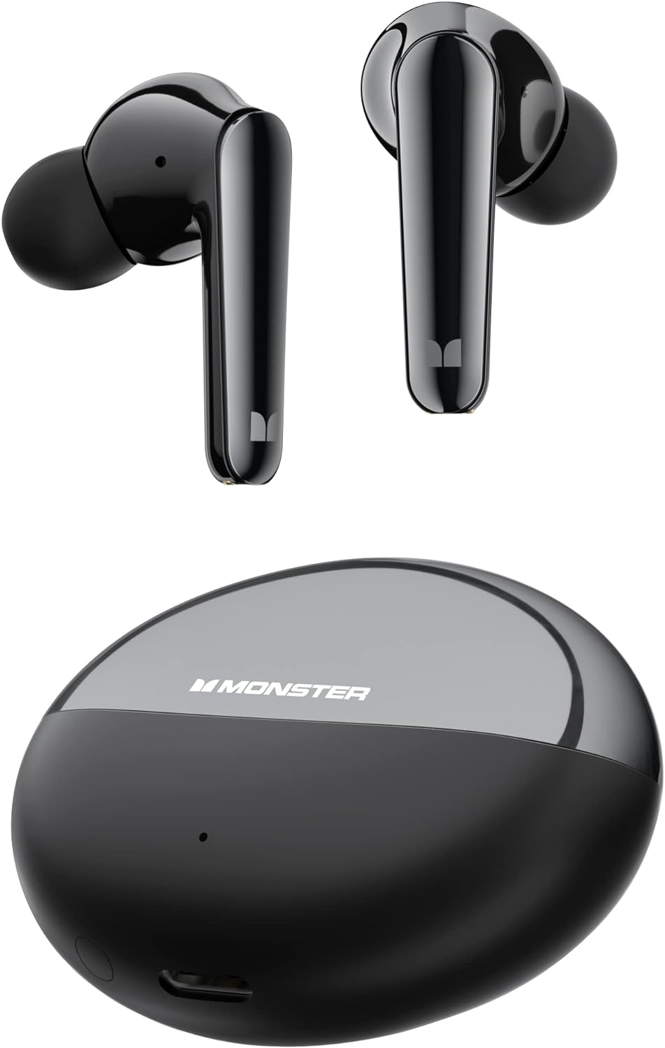 Monster N-Lite 203 AirLinks Wireless Earbuds, Bluetooth 5.3 Headphones HiFi Stereo, Wireless Earphones with 30H Playback, HD Clear Call, IPX6 Waterproof in-Ear Earbuds (Black)