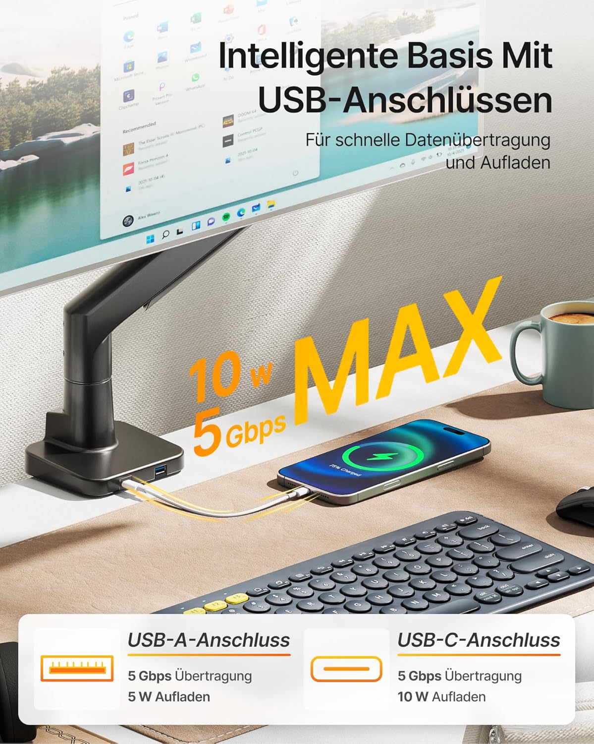 - 【Built-In USB-A & USB-C Ports for Fast Charging & Data】Stay connected with integrated USB 3.0 Type-A and Type-C ports on the base, supporting data transfer up to 5Gbps and charging speeds up to 10W. Power your devices or sync peripherals without extra clutter.