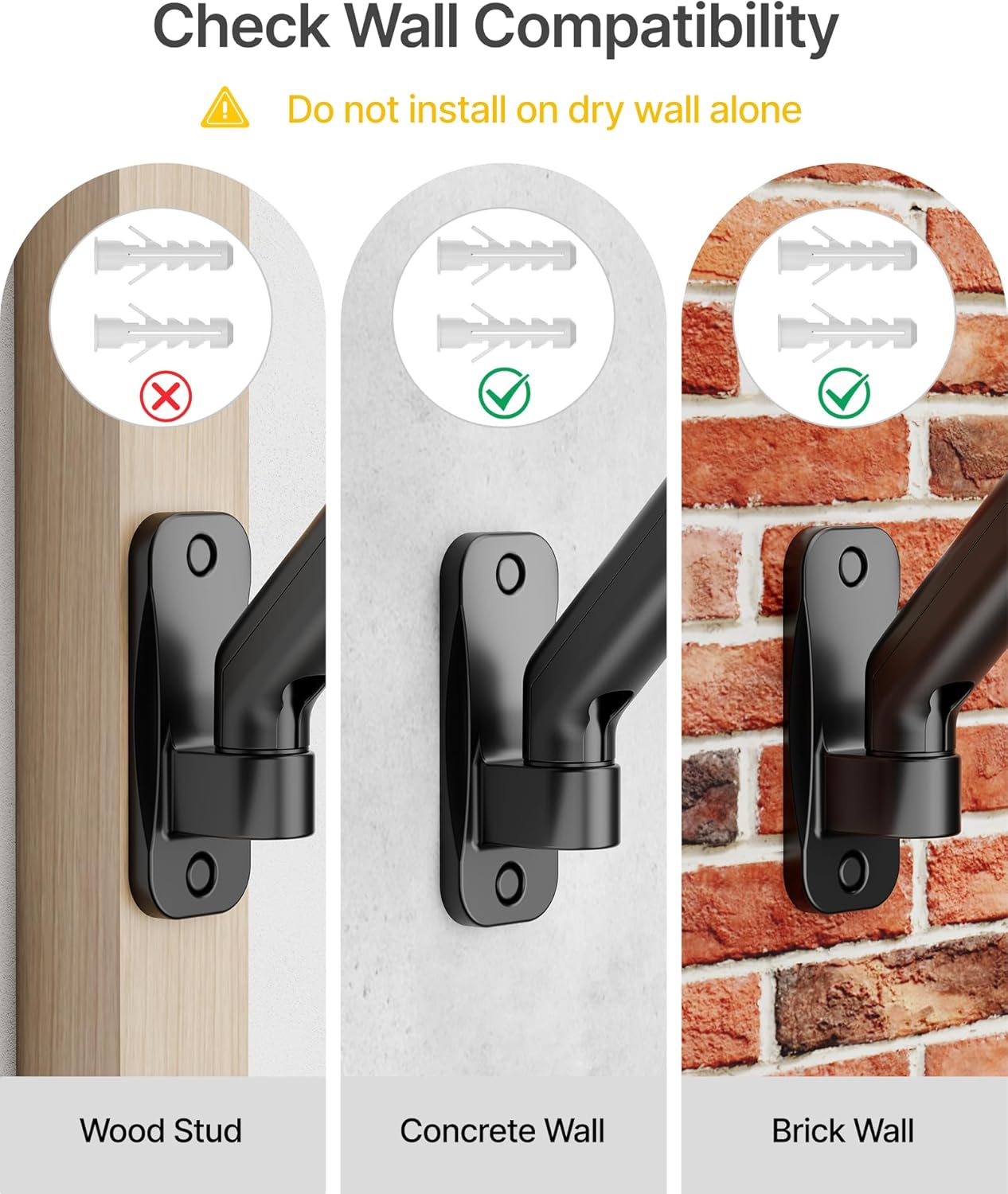 - 【Easy Installation】Designed for wood studs, brick, and concrete walls (Note: Please do not mount to drywall alone). The quick-release VESA plate makes installation effortless, allowing you to set up this monitor wall mount within 10 minutes. Ideal for use in office, home, studio, gaming setup, and even RVs, which is a multifunctional tool to enhance your efficiency and productivity