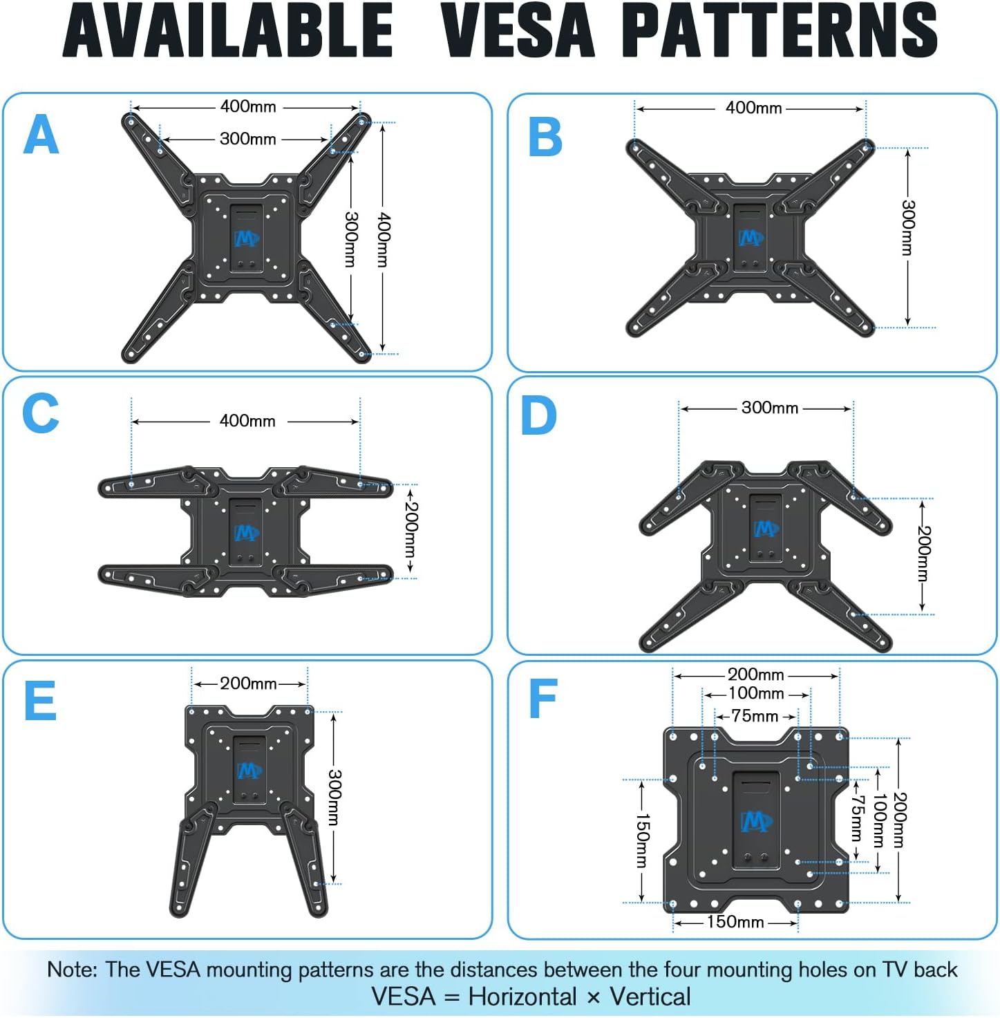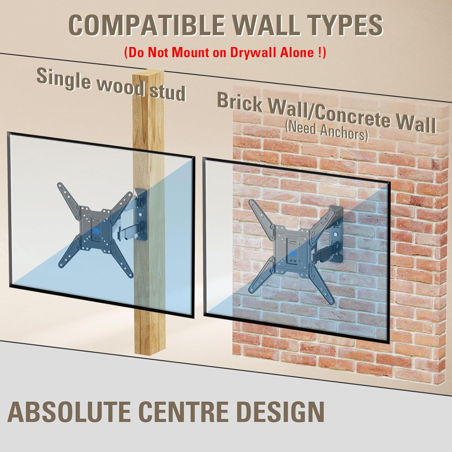 • Mounting Dream TV Wall Mount for Most 26-55" TVs, TV Mount Full Motion with Swivel Articulating Arm, Perfect Center Design Wall Mount TV Bracket, up to VESA 400x400mm and 77 lbs Loading MD2418-MX