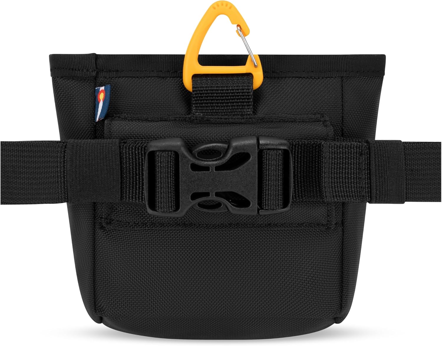 • FUNCTIONALITY & DURABILITY: Crafted with a vegan, non-toxic, recycled fabric that is water- resistant. The Goodie Treat Bag repurposes 3 plastic bottles into the perfect training treat pouch. Lightweight and easy to wear so that you have quick access to treats to reward your dog's good behavior while training. This bag can be worn around the waist, clipped onto a belt-loop, or threaded onto your personal belt. If there are any product issues or defects contact us so we can make it right!