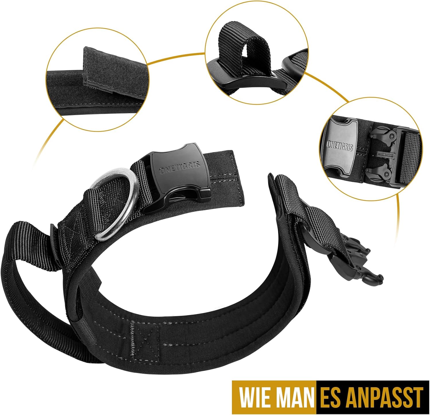 - 【Double Security】--Integrated collar button design for military training dog collar, one button to unlock, it’s easy to put on and take off, metal buckle is adjustable, you can change the length of collar based on your dog’s neck size
