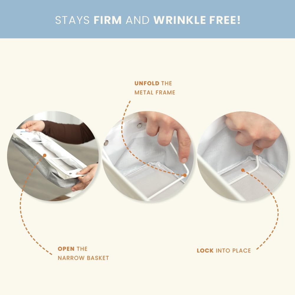 Portable and Durable Design – We know your life gets busy and things get messy which is why OrganiHaus storage baskets for shelves and closet storge bins feature a metal frame to maintain rigidity, are collapsible to save space, and have handles for easy carrying.