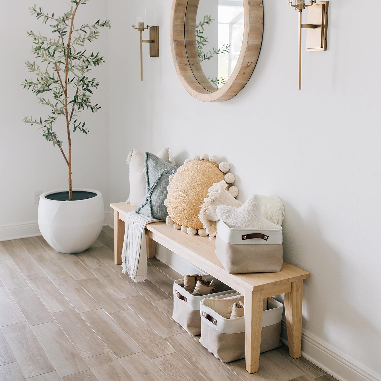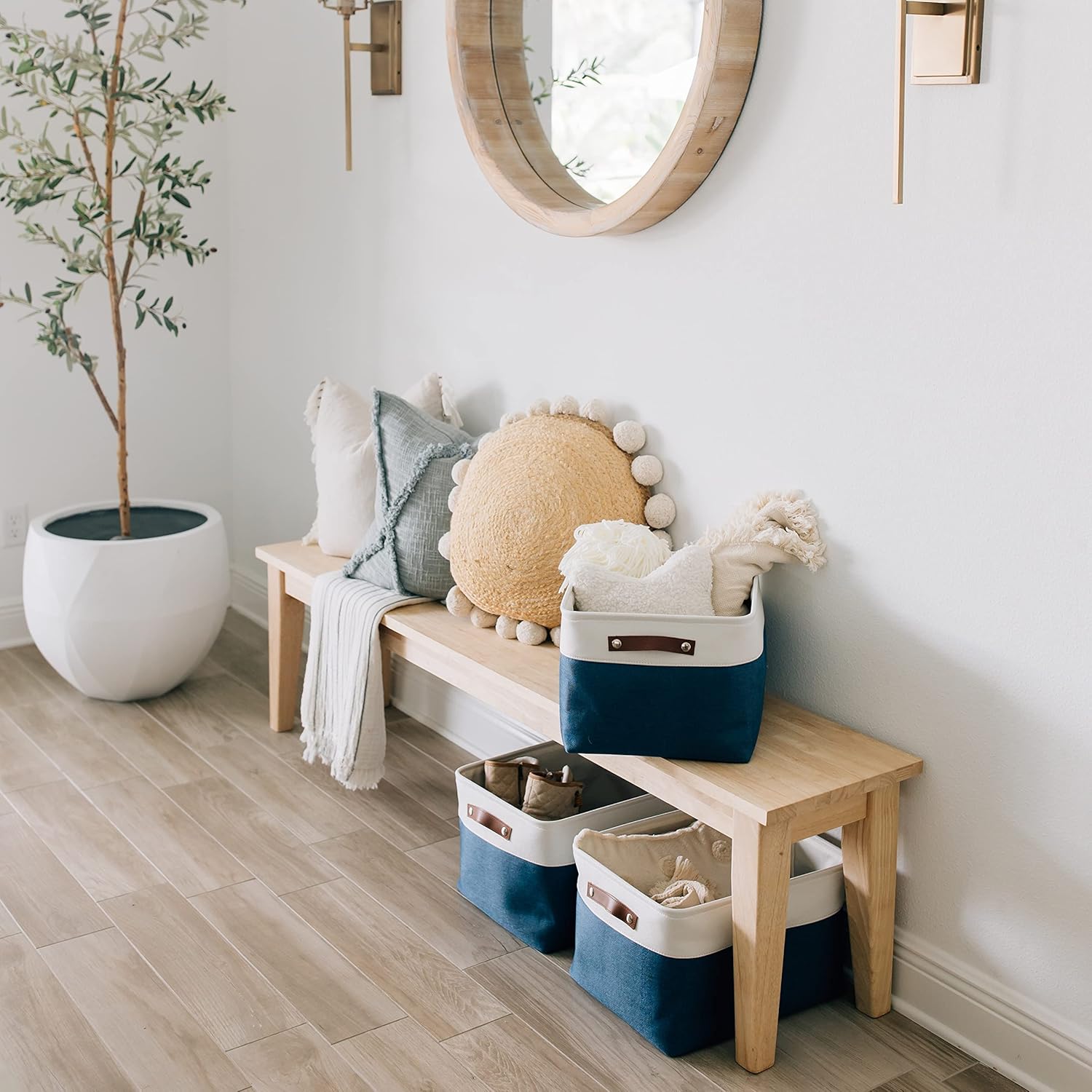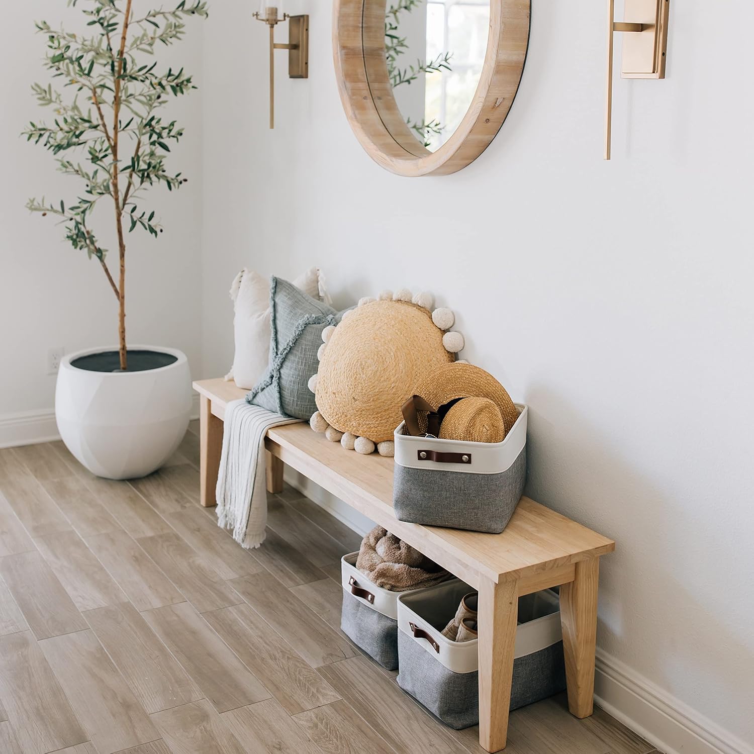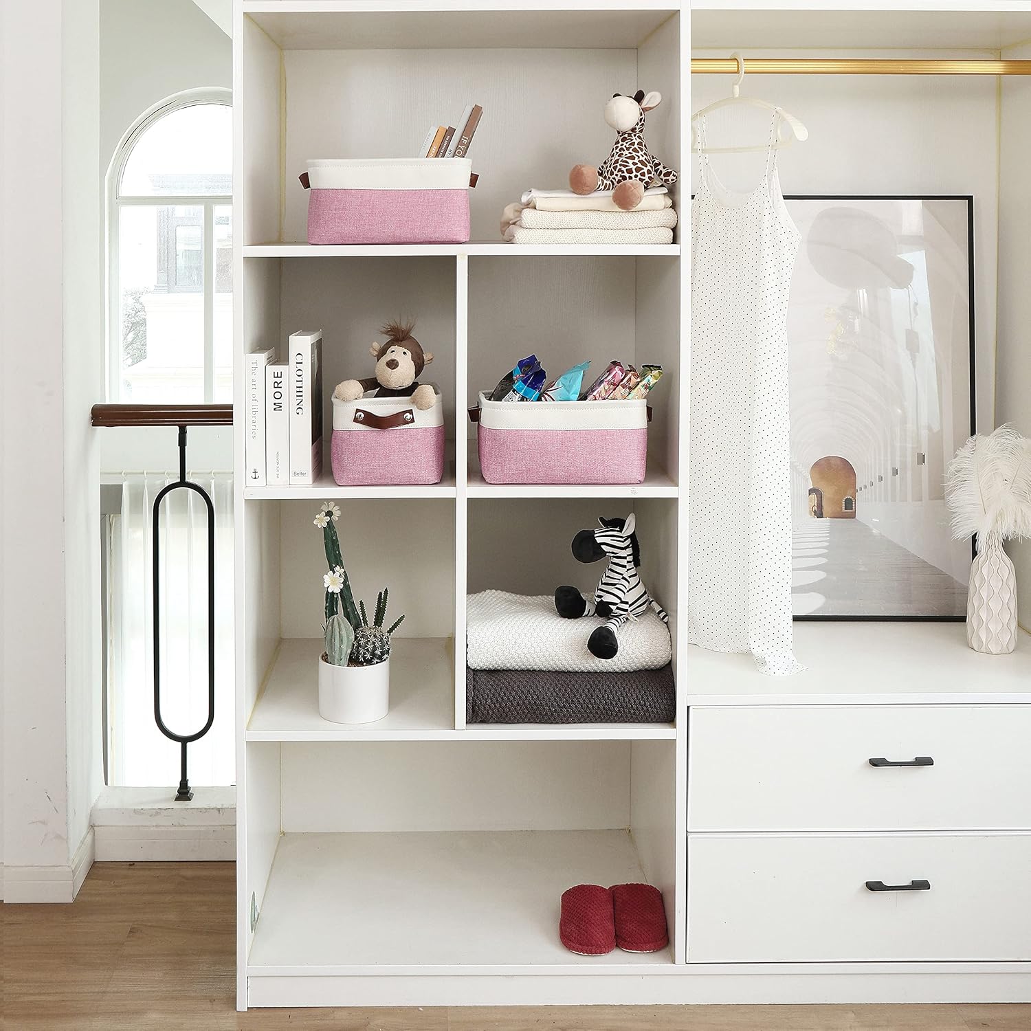 Multipurpose Closet Storage Bins – A smart choice for keeping your life neat and organized these storage bins for shelves and closet spaces can be used for clothes, kid’s toys, nursery room items, extra linens, laundry, towels, sheets, and more. - Decorative Fabric and Vegan Leather – These versatile storage baskets for organizing your everyday life are made with a thick, high-quality fabric and fitted with leather handles to add a stylish touch to a living room, bedroom, office, or personal space.