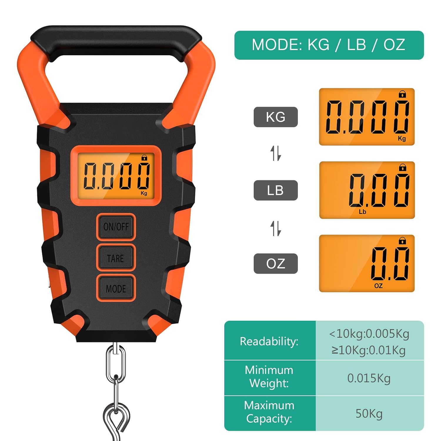 ACCURATE MEASUREMENT: The digital fishing scale has a measurement range of 15g-50Kg, a response time of about 2 seconds, high sensitivity, and accurate weighing. It also has three measurement units of Kg/LB/OZ, which will bring greater convenience
