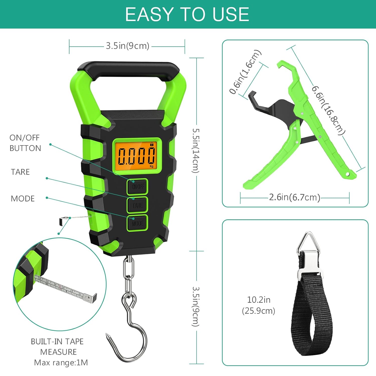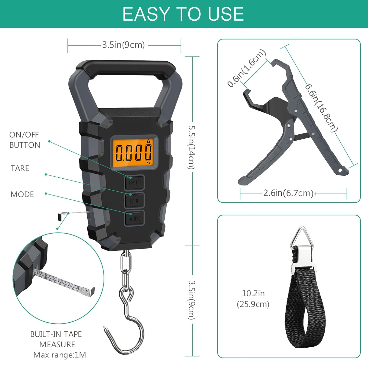 MULTI-FUNCTION SCALE: It can be used as a fishing scale and a luggage scale. It comes with a 38-inch retractable measuring tape to check the size of your luggage. It is suitable for outdoor fishing, travel luggage checks, daily shopping weighing, etc