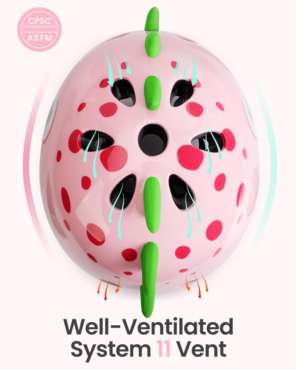 - Comfortable Fit - The toddler bike helmet has an adjustable dial and straps for a customized fit. It includes a removable, soft, and washable lining and features 10 ventilation holes for a cool and comfortable experience.