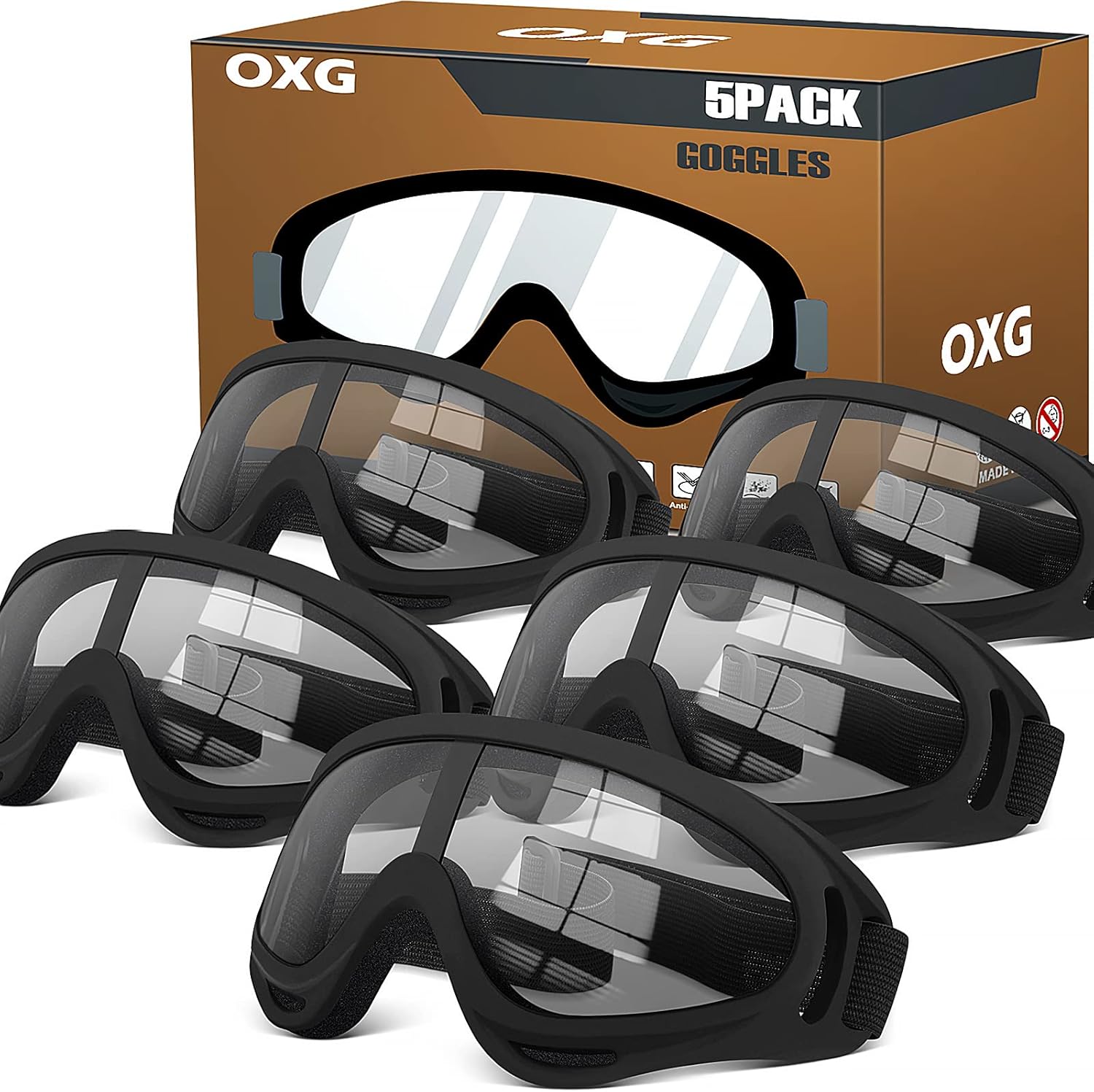 OXG 5 Pack Motorcycle Goggles Ski goggles, Dirt Bike ATV Goggles Anti-UV Riding Safety Glasses for Men Women, Dirt Bike Accessories (Clear Lense)