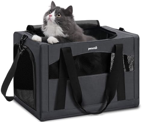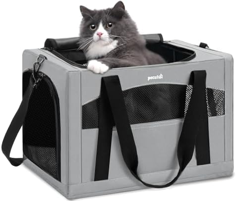 Pecute Cat Carrier Dog Carrier with Stable Structure, Breathable Mesh Fabric Pet Carrier for for Small Cats Dogs Puppies up to 5KG,Soft-Sided Dog Carrier Suitable for Both Long and Short Trips,Gray