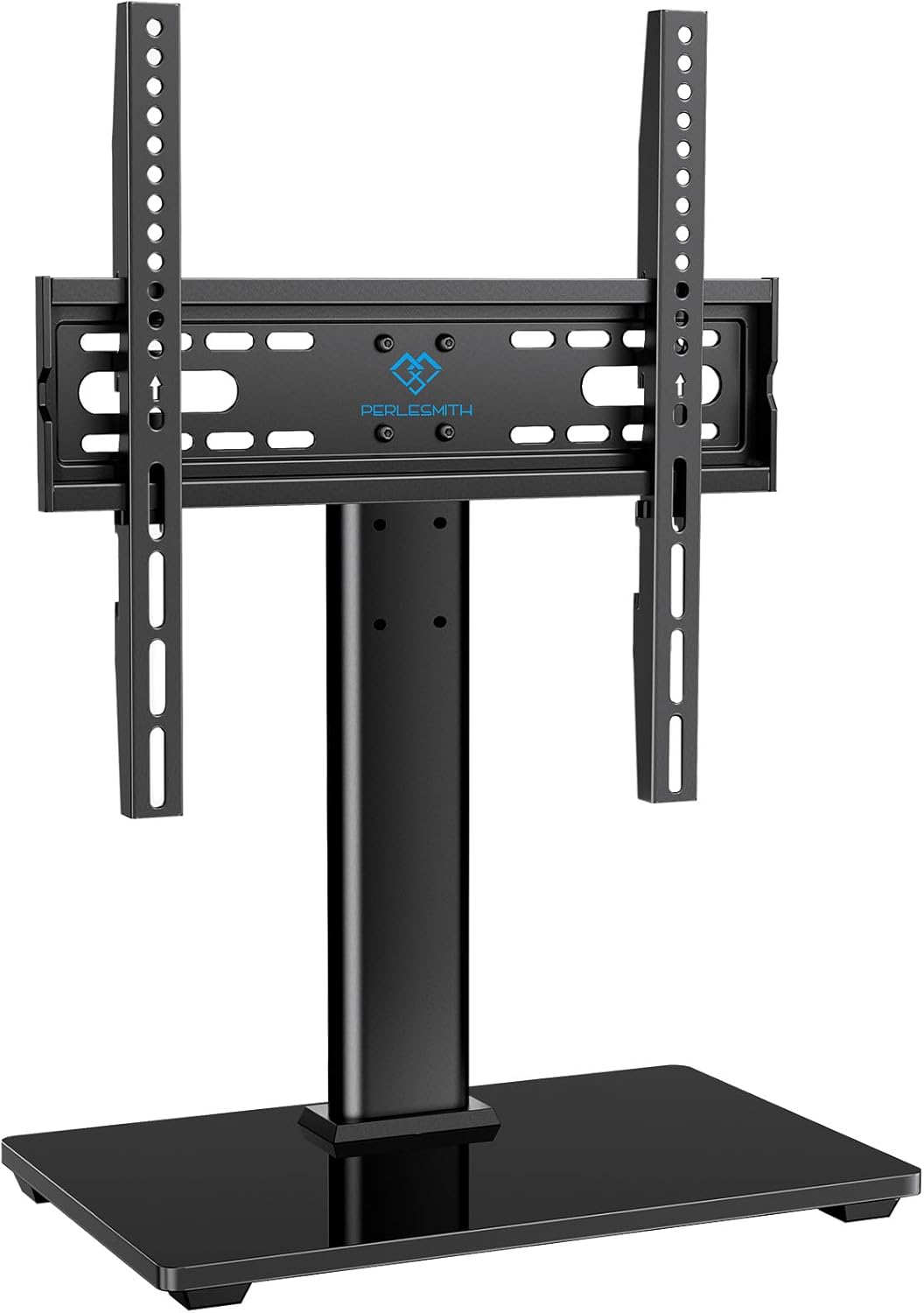 • PERLESMITH Universal TV Stand - Table Top TV Stand for 32-60 inch LCD LED TVs - Height Adjustable TV Base Stand with Tempered Glass Base & Wire Management, VESA 400x400mm