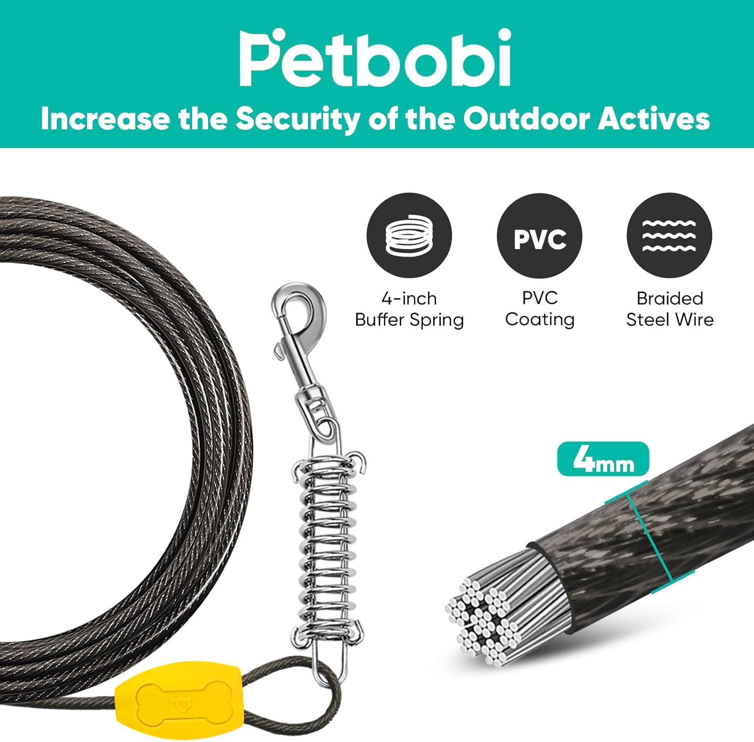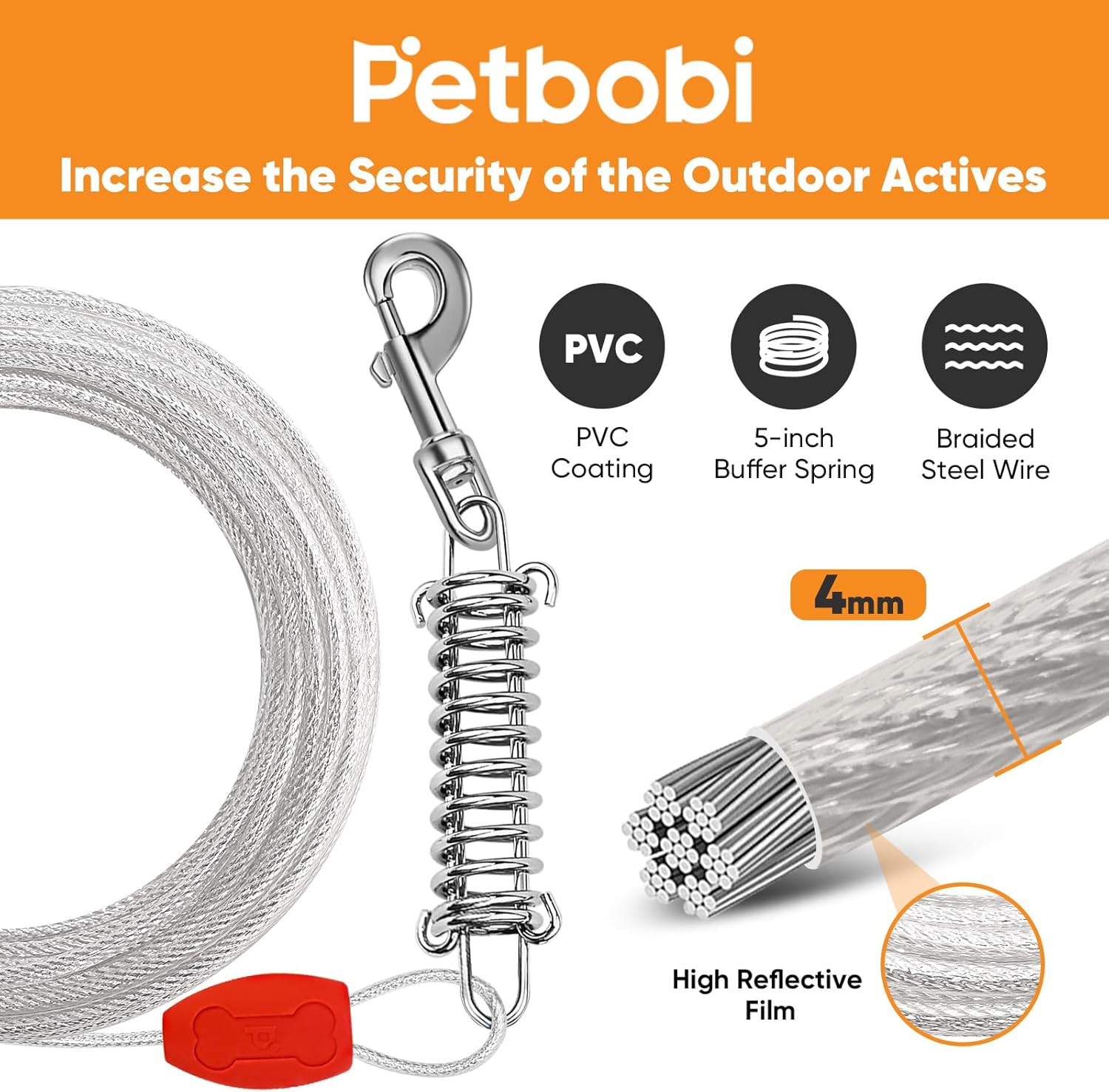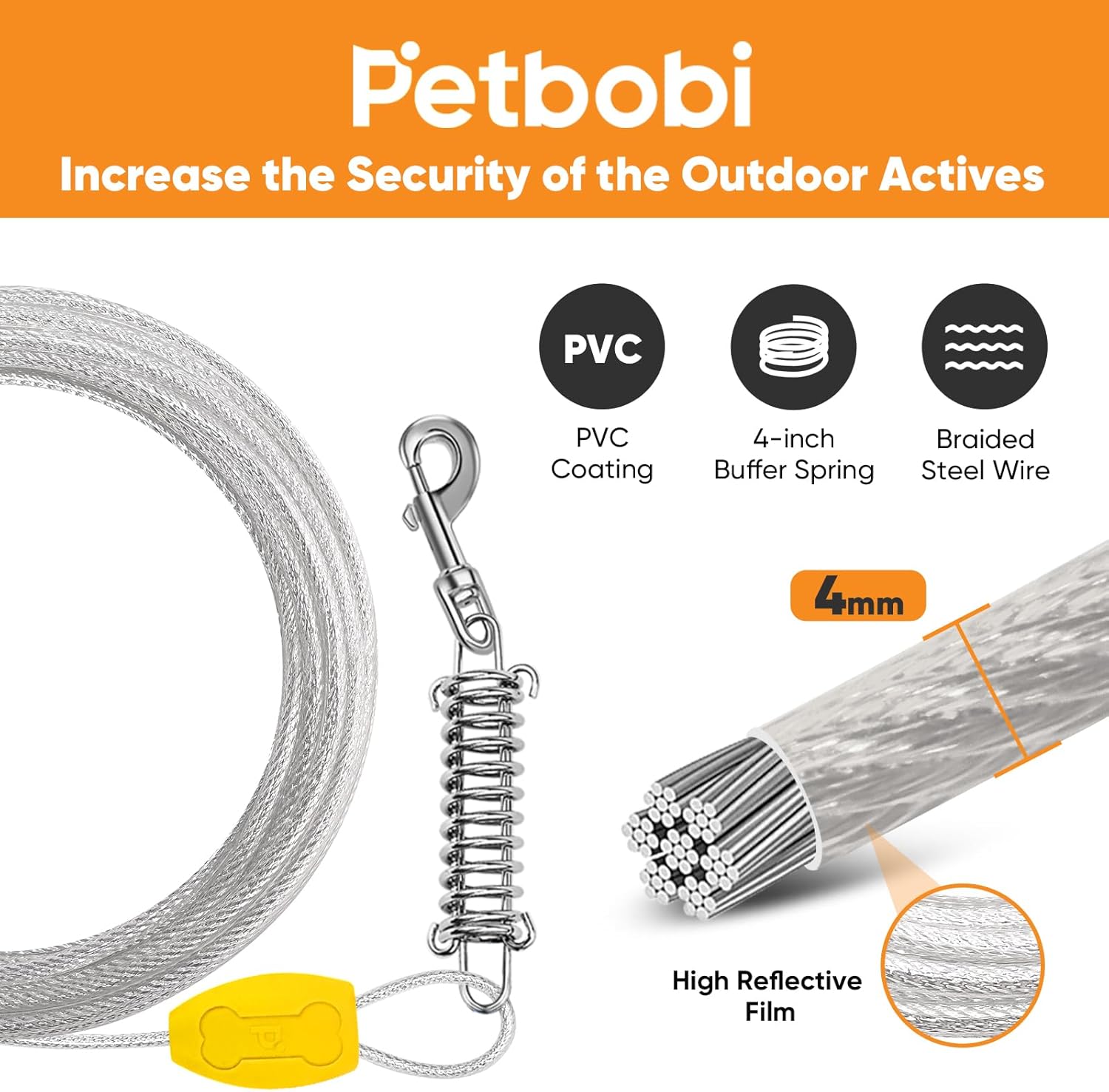 • Petbobi Shopping Guide: You will receive a 30 ft dog leash, a 16 inch stake, and a box. Suitable for dogs weighing 30-120 lbs, such as Labs, Pit Bulls, German Shepherds, Huskies, etc. Regularly check and replace the leash if your dog tends to escape. If the leash's surface is damaged or the stake is bent or broken, please discontinue use