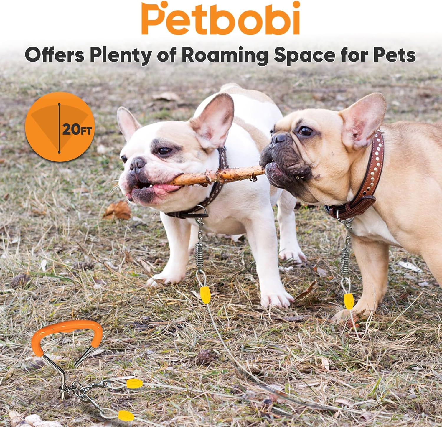 Petbobi Dog Tie-Out Cable and Stake - 30ft Heavy Duty Cable with Spring, No Tangle, 16in Ground Stake, Ideal for Yard, Camping and Beach, Suitable for Small Medium Large Dogs Up to 120 lbs, BluePL17-B07CXJGZY5