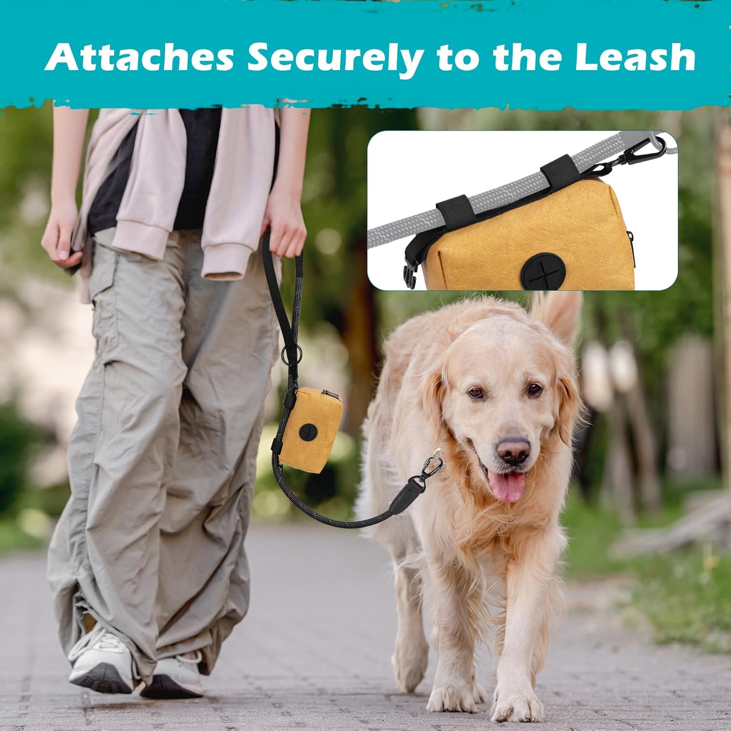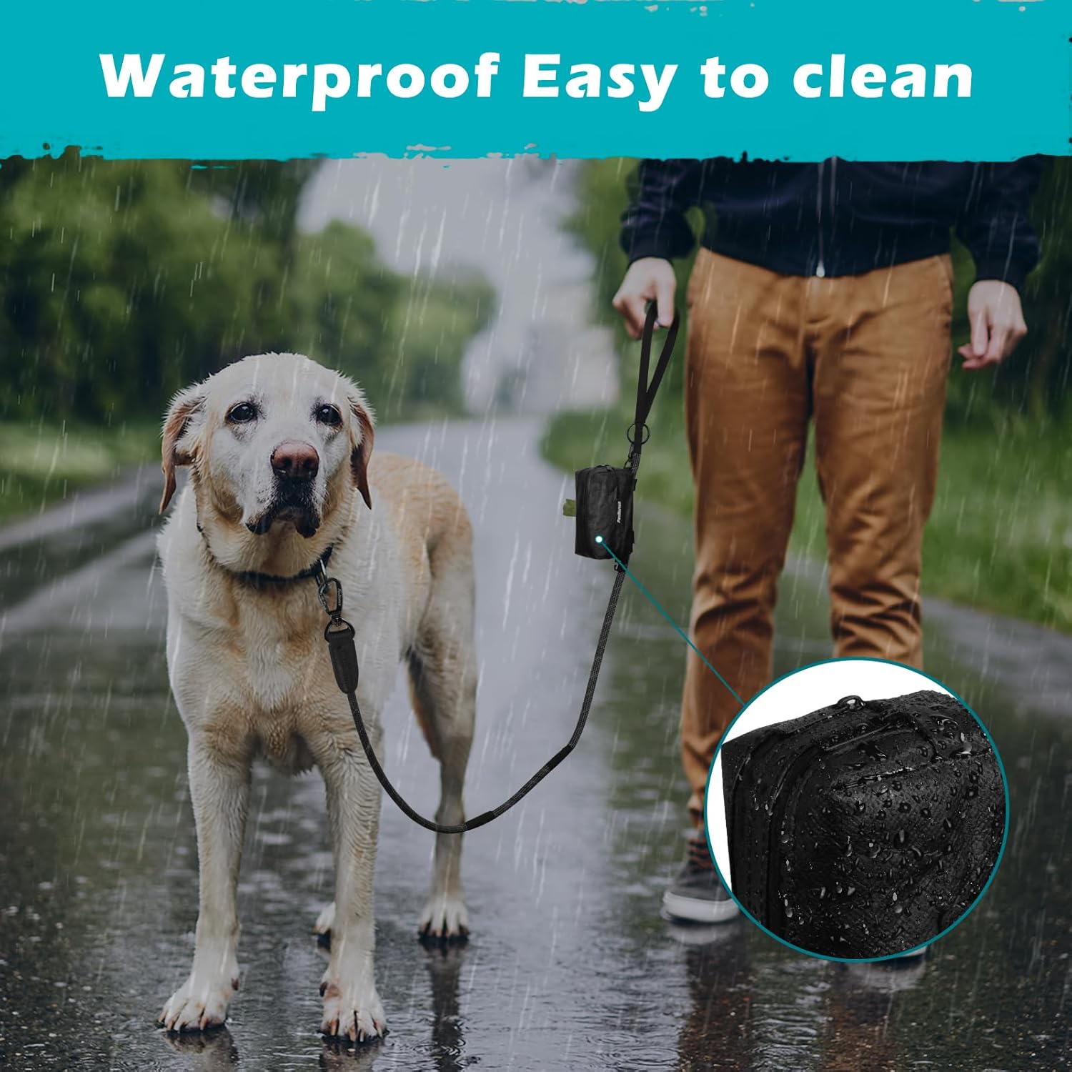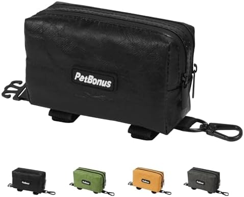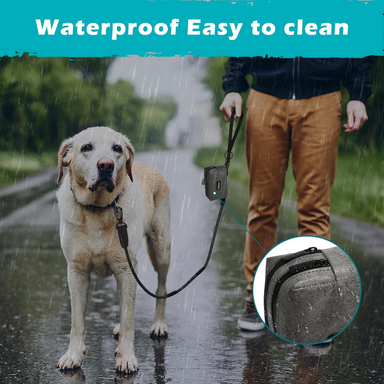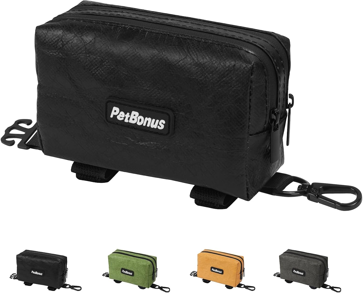 PetBonus Waterproof Dog Poop Bag Holder for leashes, Portable Pet Waste Bag Dispenser, 2 Pouches for Treat Holder and Walking Accessories, Fit All Leashes, Includes 1 Roll of Dog Poop Bags (Green)